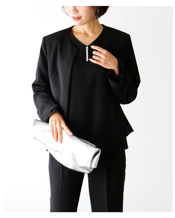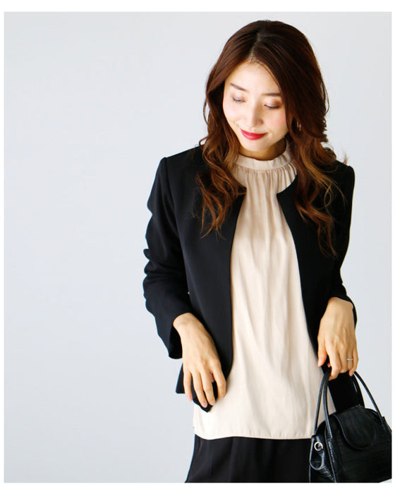 ジャケット ノーカラージャケット マット ブラック 黒 オケージョン 羽織 アウター きれいめ Ehre style スタイル エーレスタイル お呼ばれ フォーマル 春 夏 秋 冬 オールシーズン 小柄さんもOK Ehrestyle フリーサイズ
