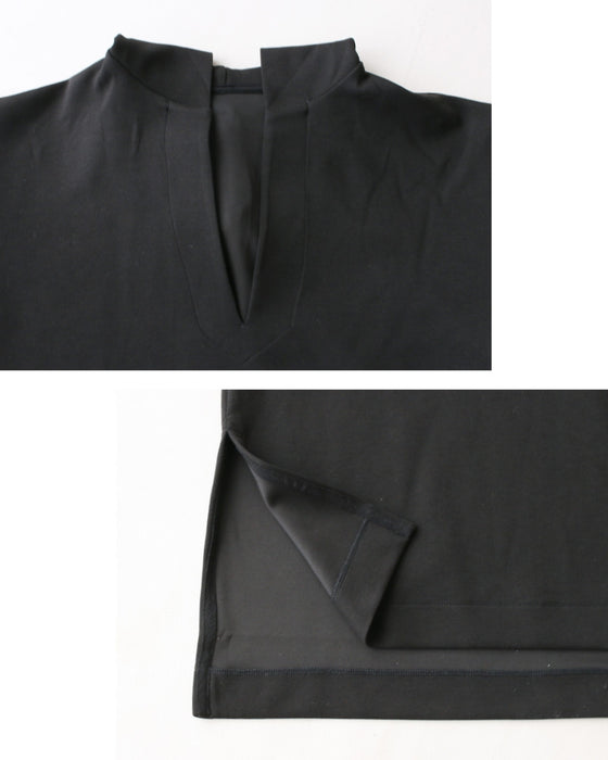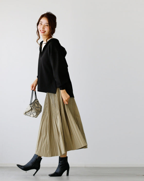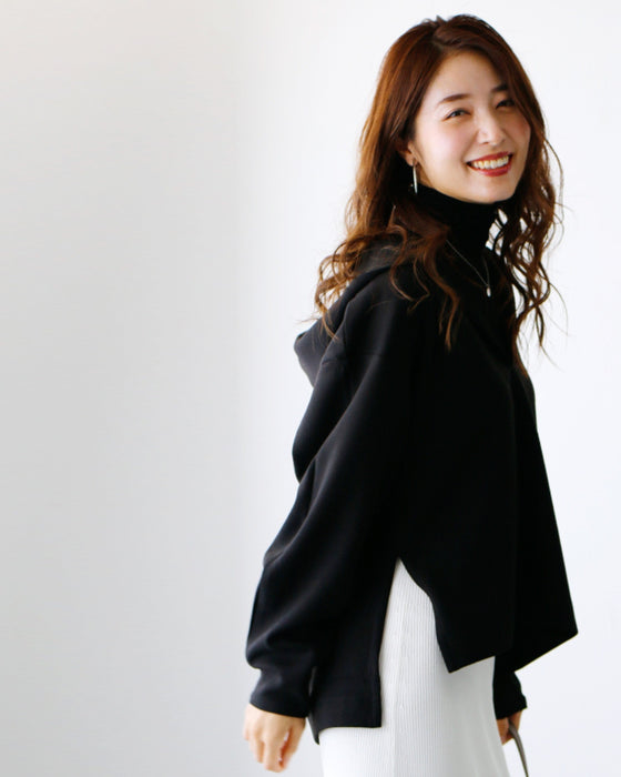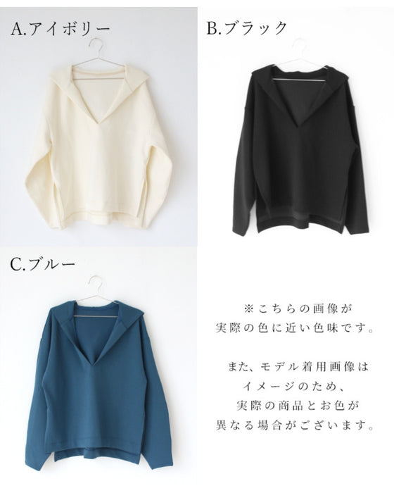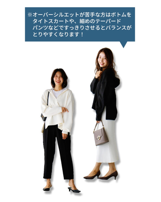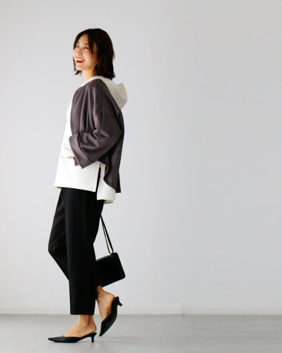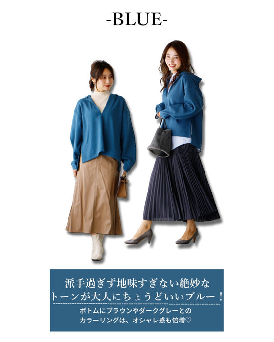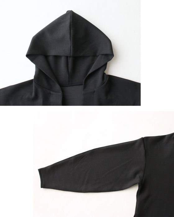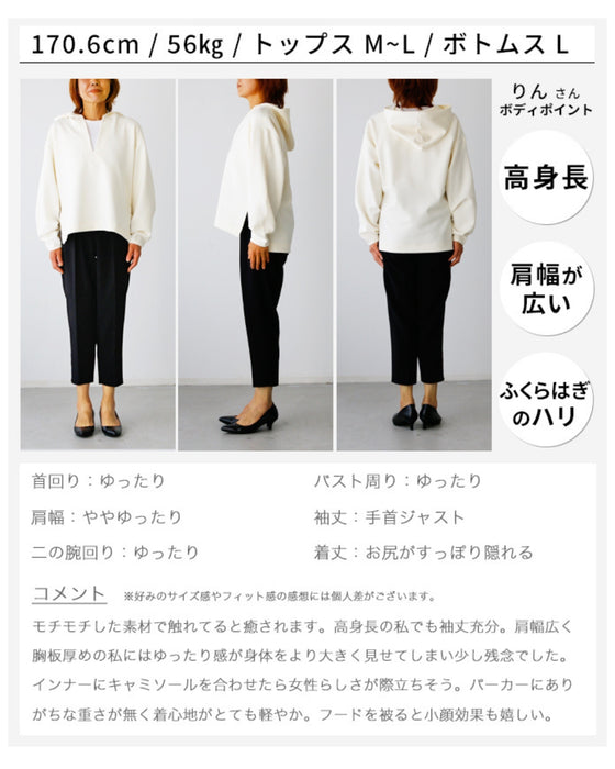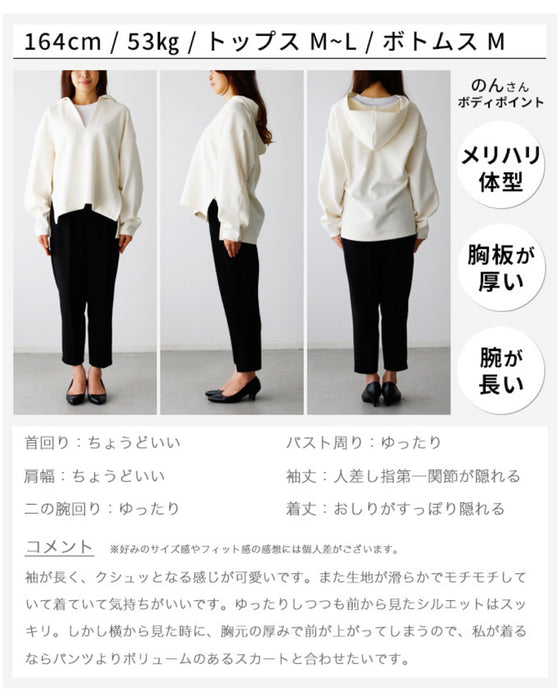 パーカー きれいめ フード レイヤード Vネック 長袖 小顔効果 ワイド ゆったり リラクシー サイドスリット ポンチ素材 ポンチ ノンストレス ストレッチ アイボリー ブラック ブルー 黒 Ehrestyle スタイル エーレスタイル フリーサイズ
