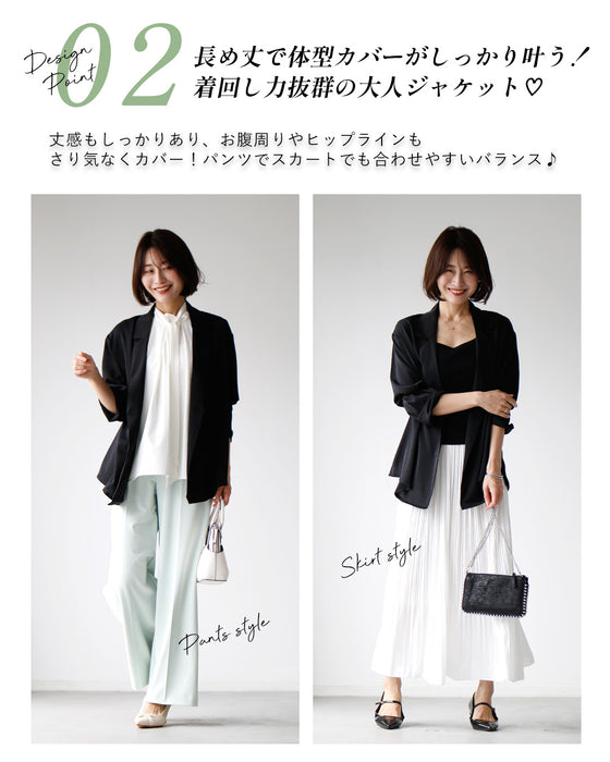 ジャケット アウター 上着 羽織り 羽織 長袖 薄手 無地 スタンダード ベーシック オフィス ブラック ホワイト ミント Black White Mint 黒 白 緑 S M L 春 夏 秋 着回し 仕事 レディース ファッション Ehre style スタイル エーレスタイル 小柄さんもOK Ehrestyle