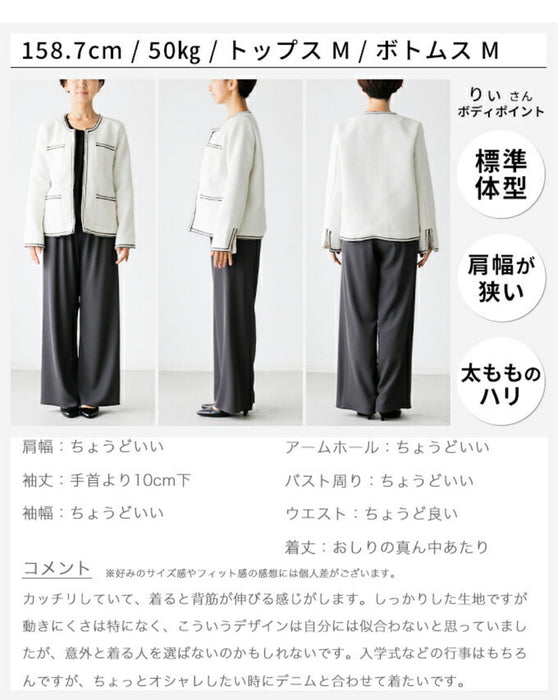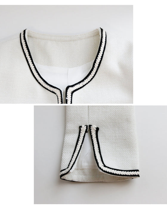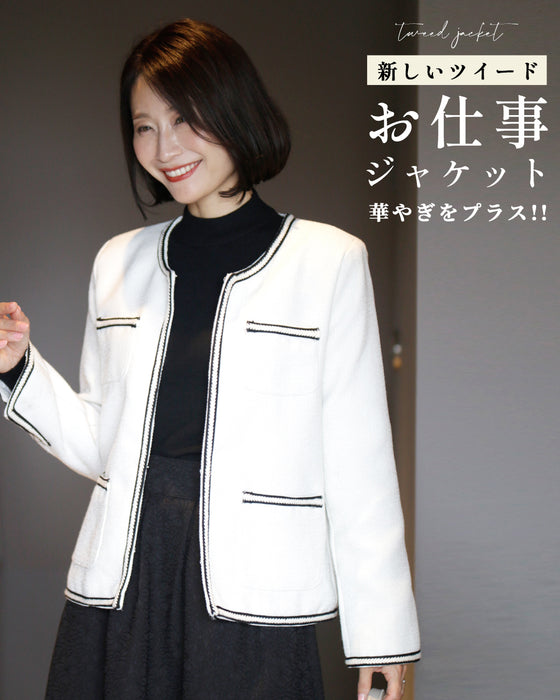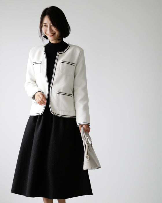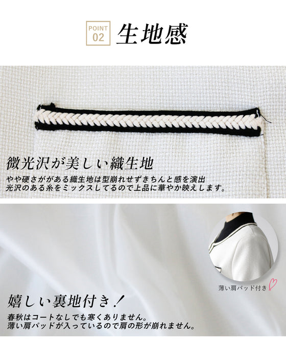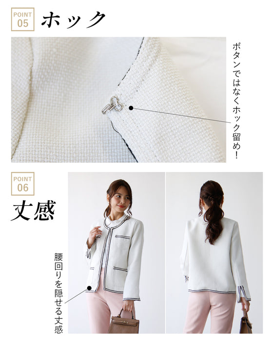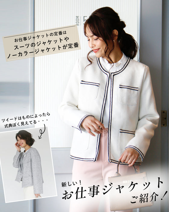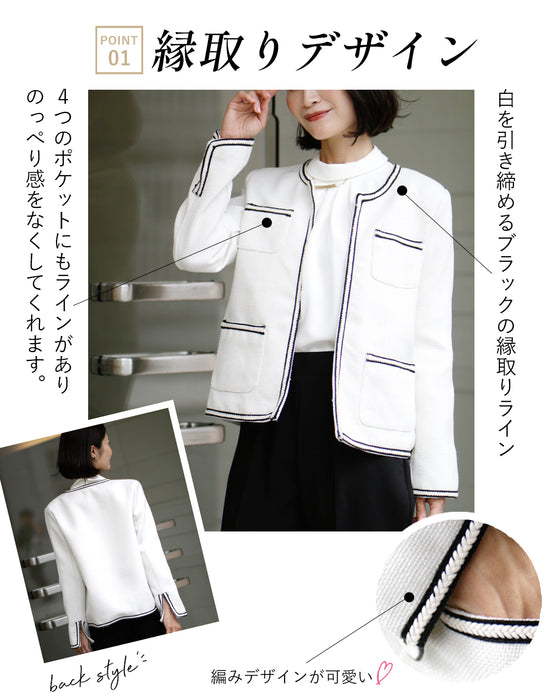 ジャケット ラウンドネック パイピング ホワイト white 白 レディース ファッション 秋 冬 S M L フリーサイズ お仕事 学校行事 Ehre style スタイル エーレスタイル 小柄さんもOK Ehrestyle