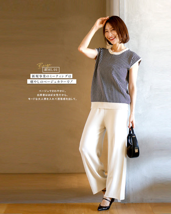 ウエストゴムで履き心地のいいニットパンツ