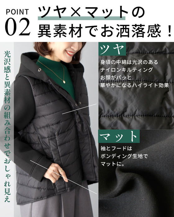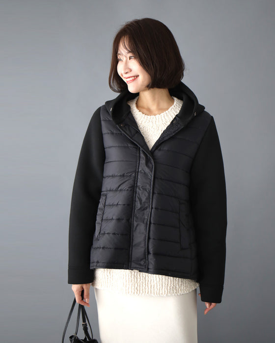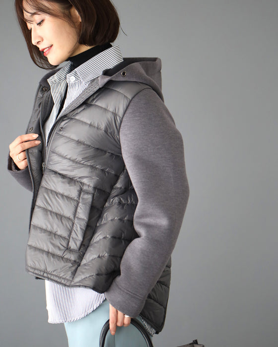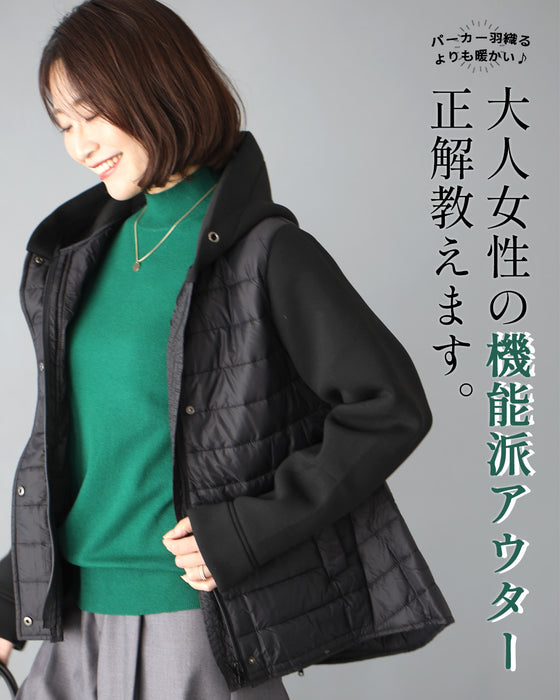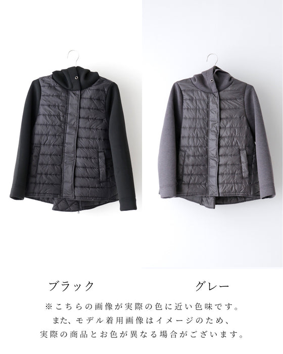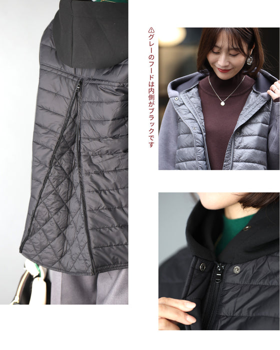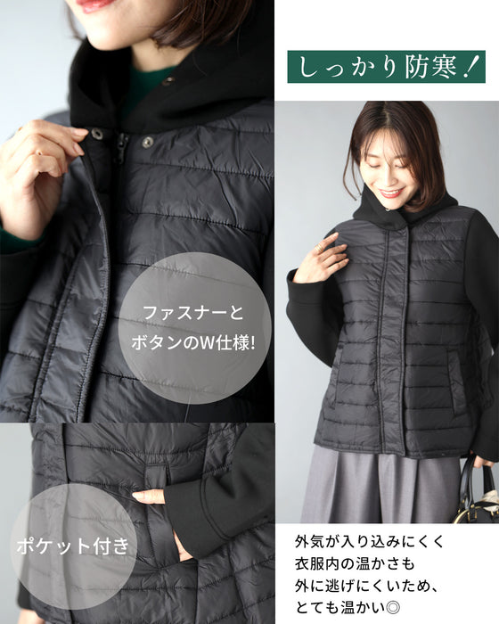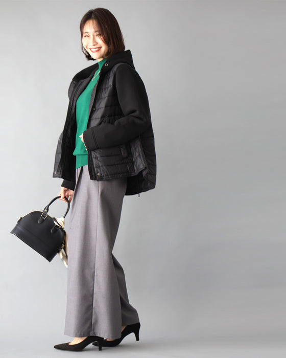 異素材合わせショートアウター ショートアウター アウター フード フード付きコート コート ショートコート ブラック グレー black gray 黒 灰 秋 冬 秋冬 防寒 あたたかい フリーサイズ レディース ファッション Ehre style スタイル エーレスタイル 小柄さんもOK Ehrestyle