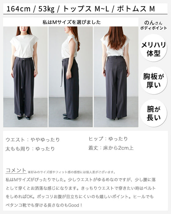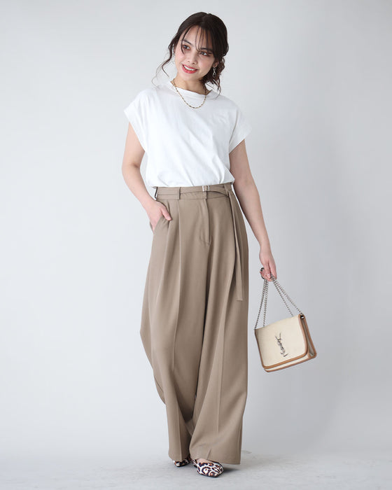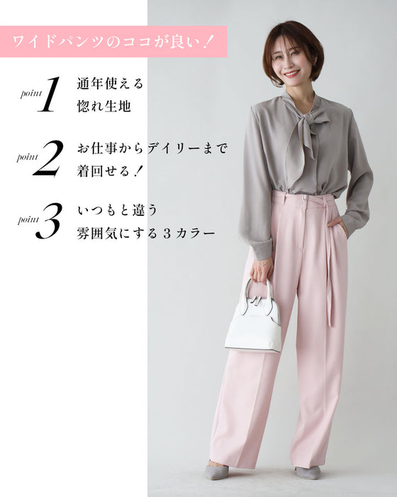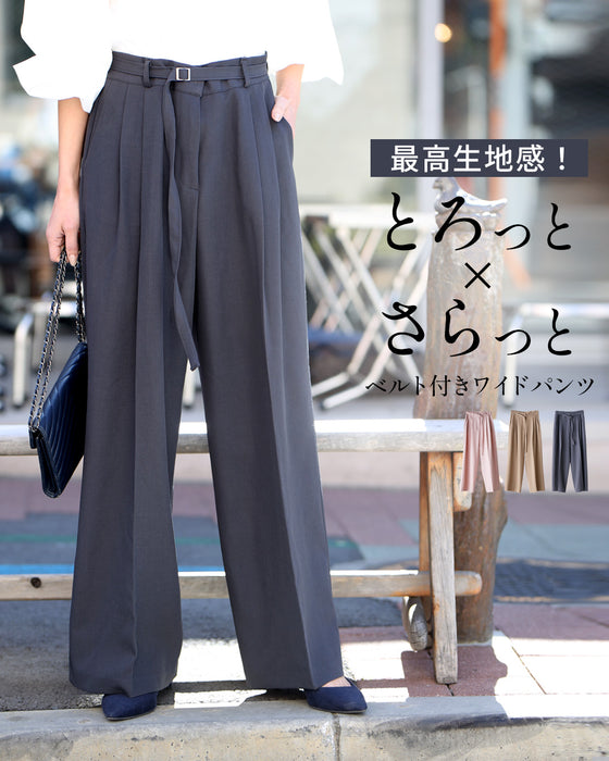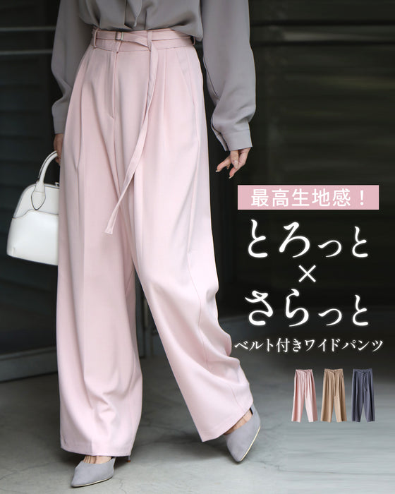 最高生地感!とろっと×さらっとベルト付きワイドパンツ