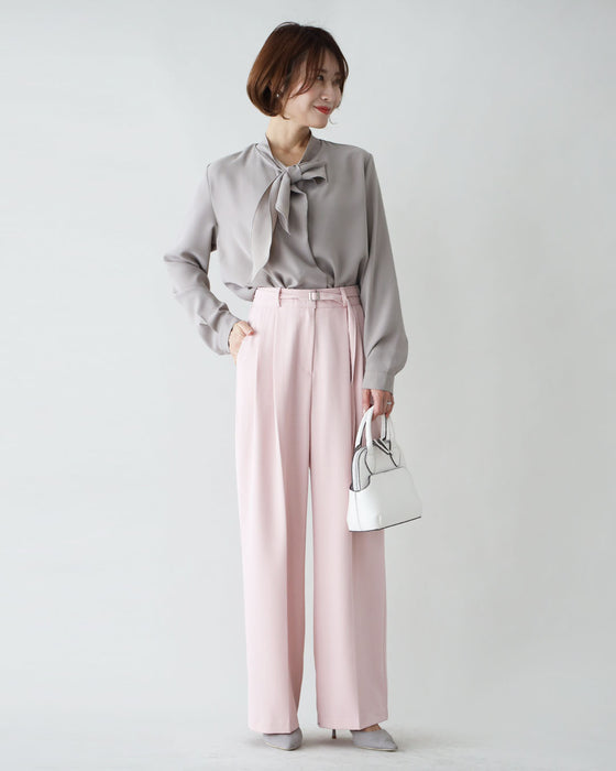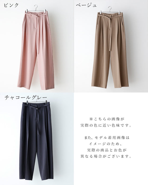 ワイドパンツ ベルト付きパンツ 共布ベルト付き パンツ M L ピンク ベージュ チャコールグレー pink beige charcoal gray 桃色 灰色 肌色 とろっと生地感 ゆったりパンツ さらっと 春 夏 秋 レディース ファッション Ehre style スタイル エーレスタイル