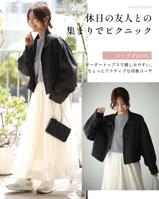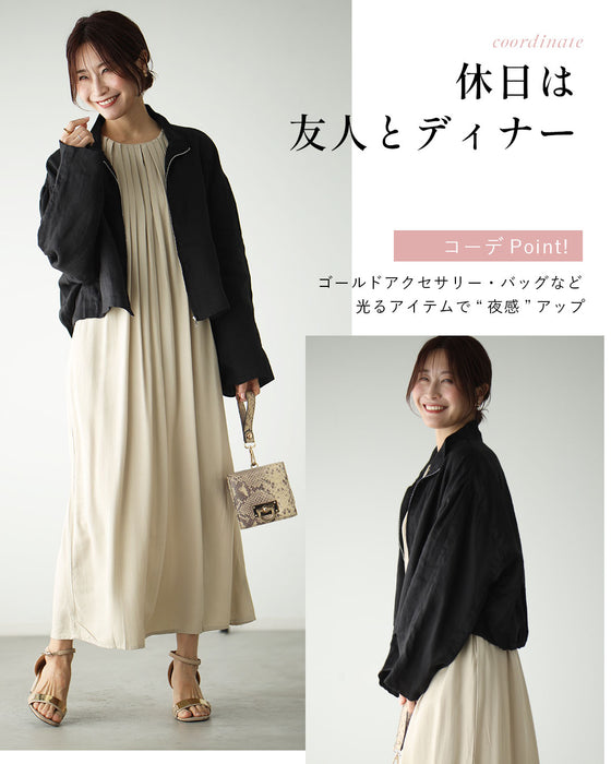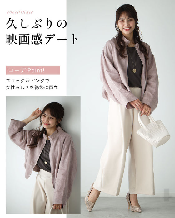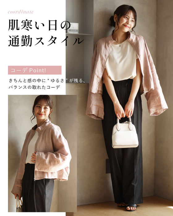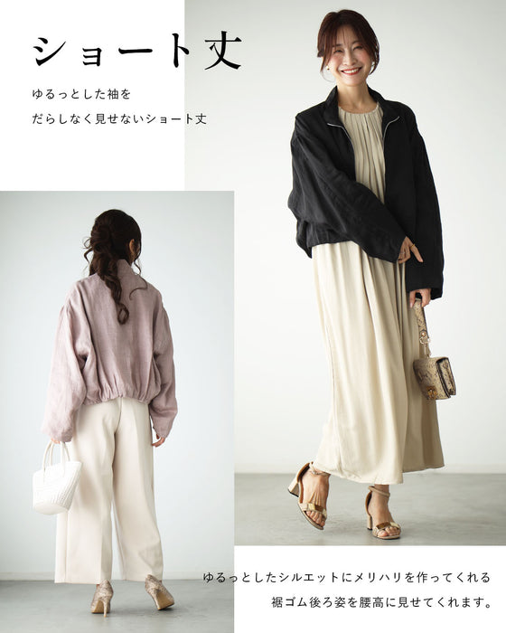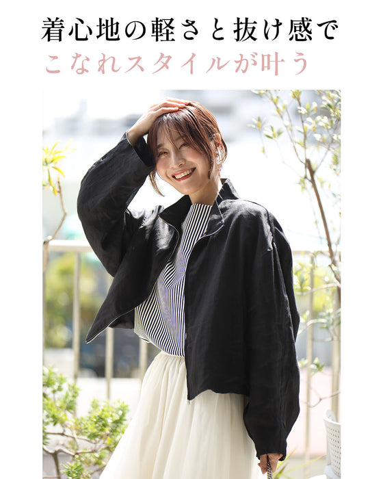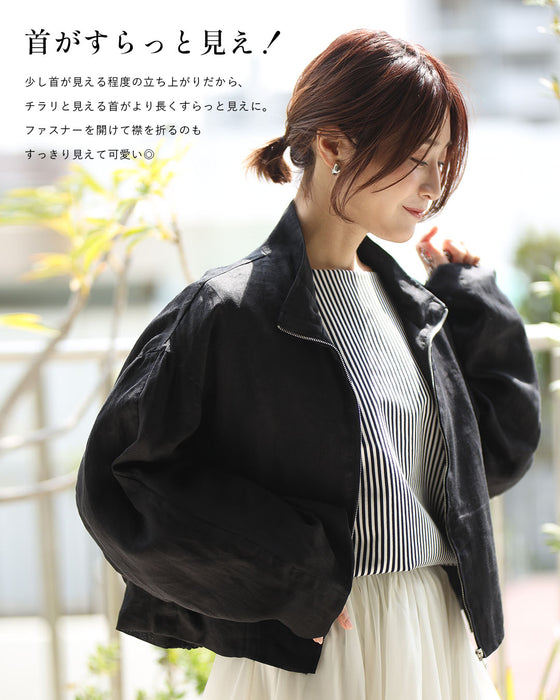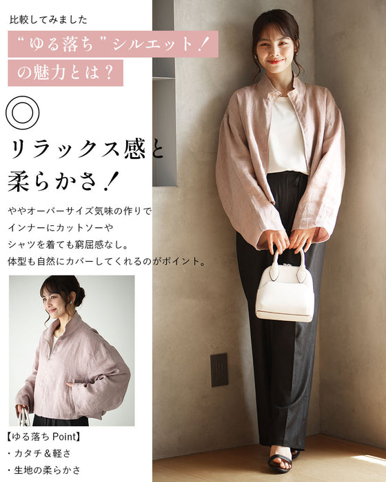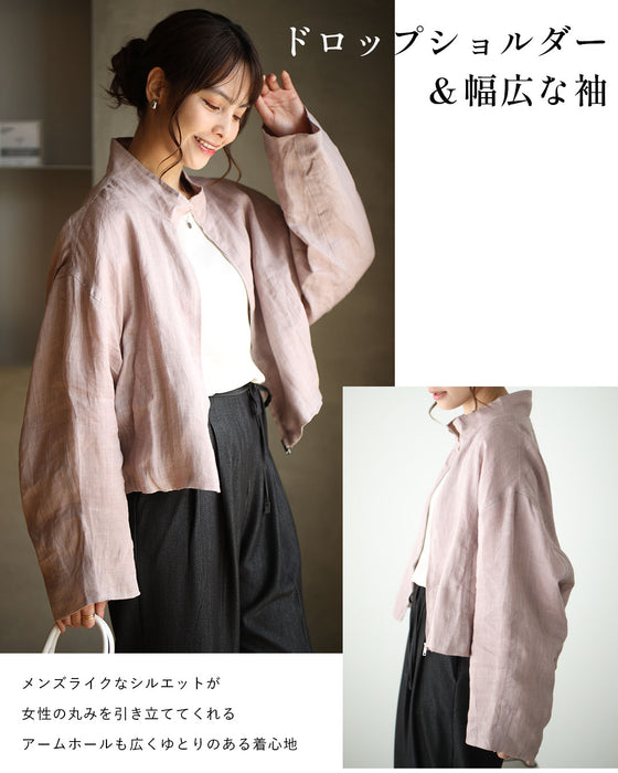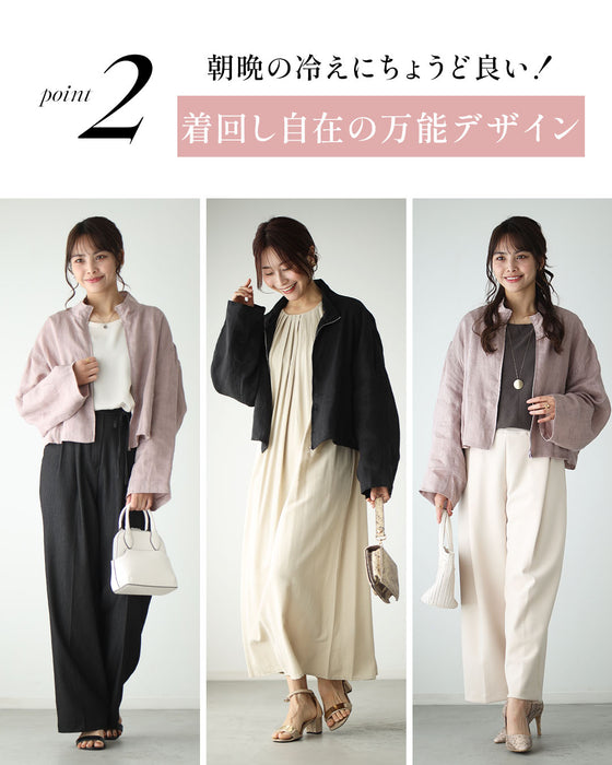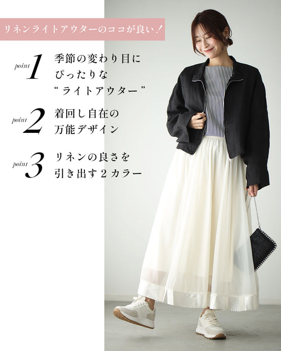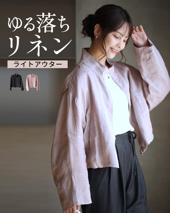 ライトアウター 麻素材 リネン アウター ジップアップ ジャケット 薄手アウター 羽織り 軽いジャケット 薄手羽織り 長袖 ブラック ピンク black pink 黒 桃色 春 夏 無地 フリーサイズ レディース ファッション Ehre style スタイル エーレスタイル