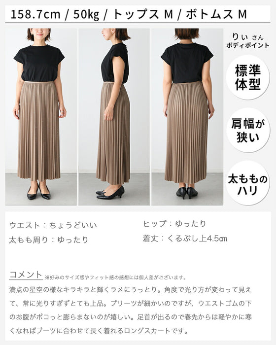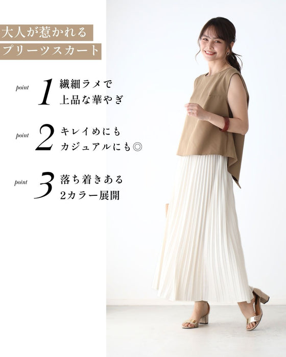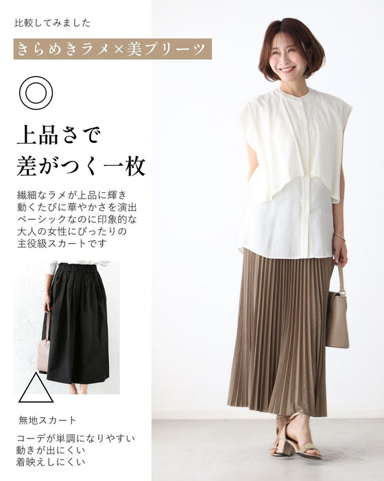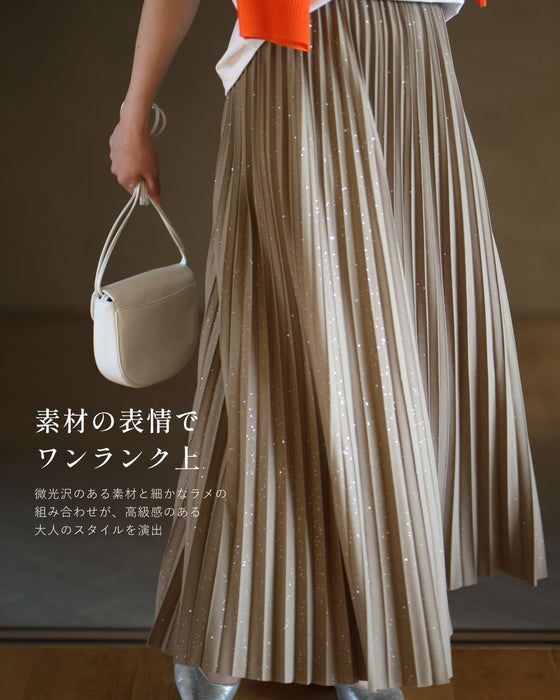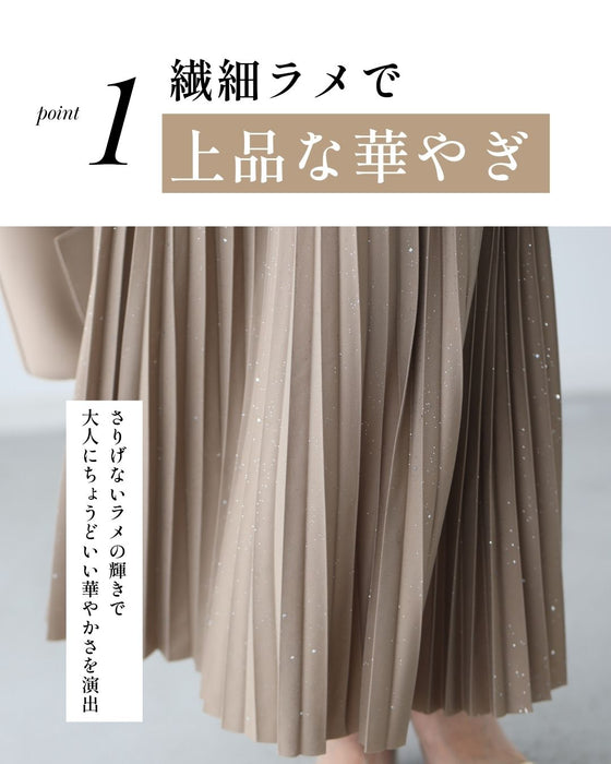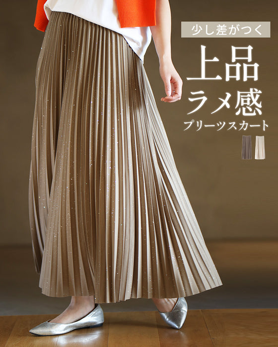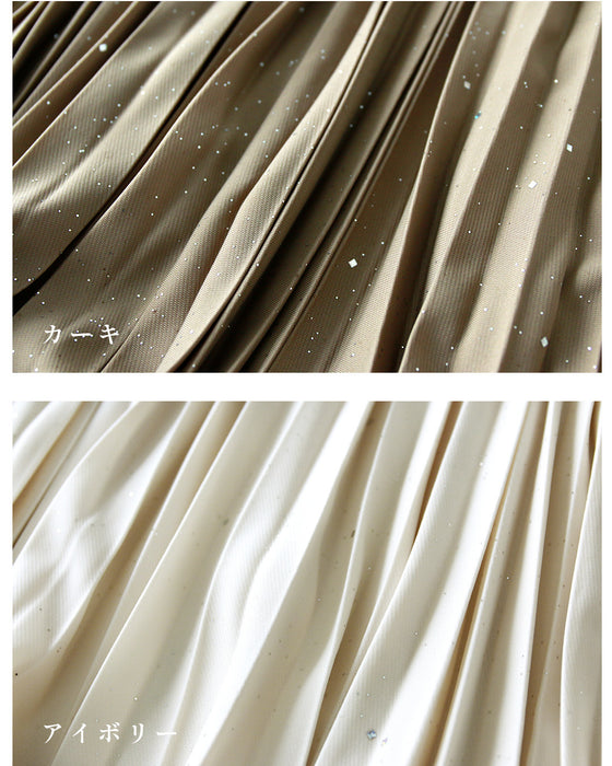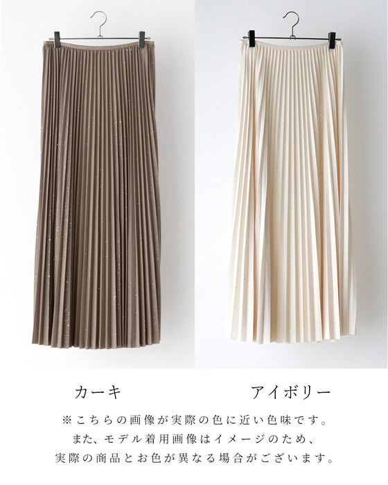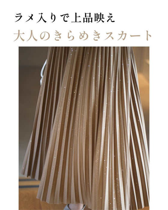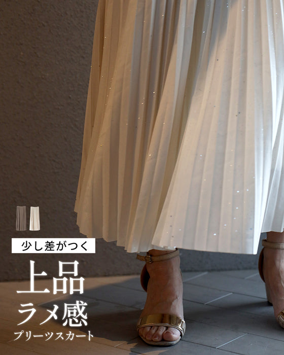 ラメプリーツスカート ラメ プリーツ スカート 上品 アイボリー カーキ ivory khaki 白 緑 プリーツスカート オールシーズン 華やか すっきり見せ 高級感 きれいめ 華奢見え 可愛い フリーサイズ レディース ファッション Ehre style スタイル エーレスタイル