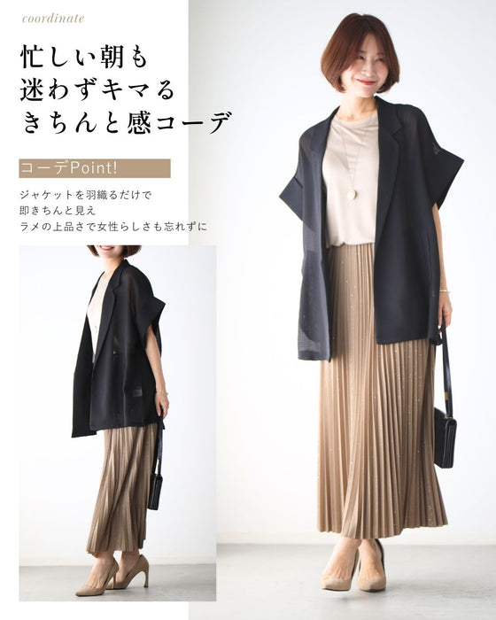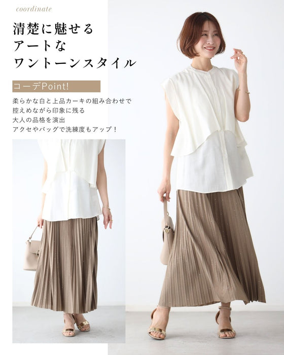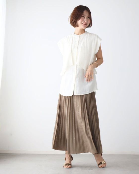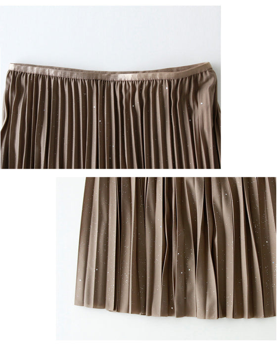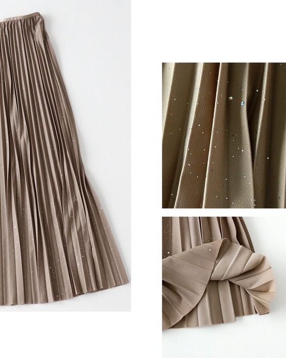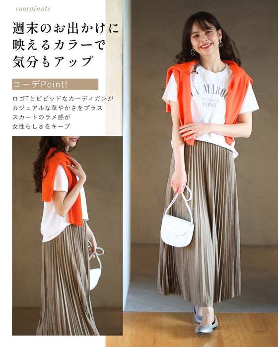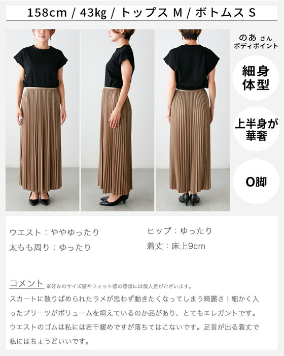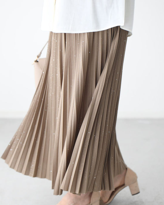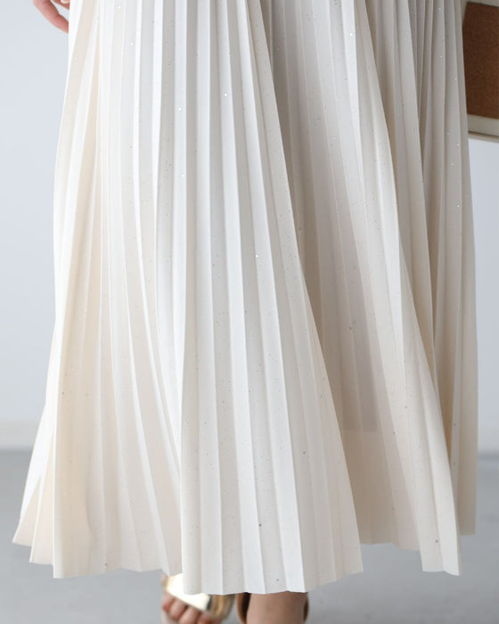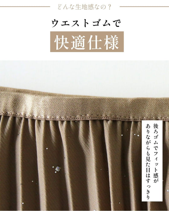 ラメプリーツスカート ラメ プリーツ スカート 上品 アイボリー カーキ ivory khaki 白 緑 プリーツスカート オールシーズン 華やか すっきり見せ 高級感 きれいめ 華奢見え 可愛い フリーサイズ レディース ファッション Ehre style スタイル エーレスタイル