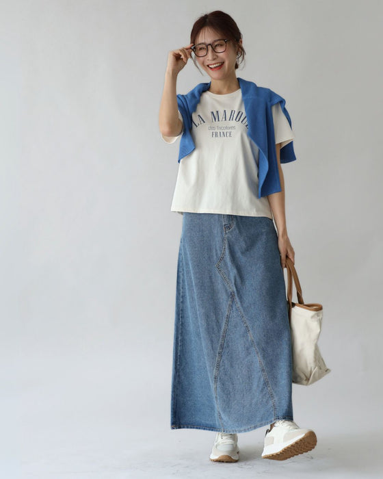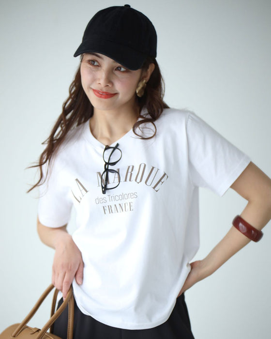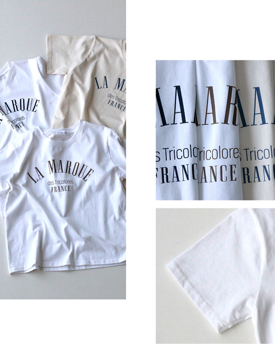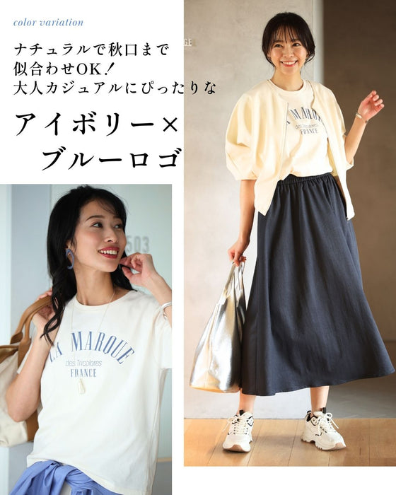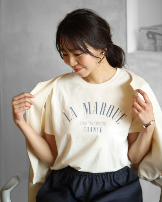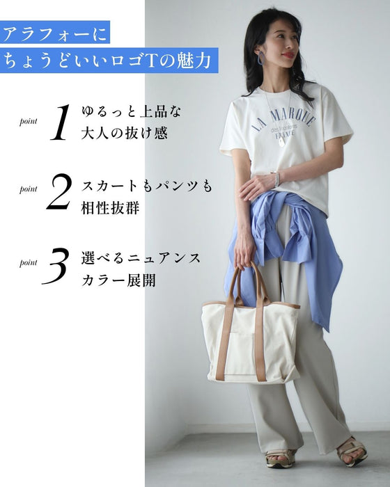 ・ナチュラルで大人のカジュアルにぴったり アイボリー×ブルーロゴ