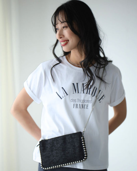 黒を合わせてモードに。ロゴがほどよいアクセントに。