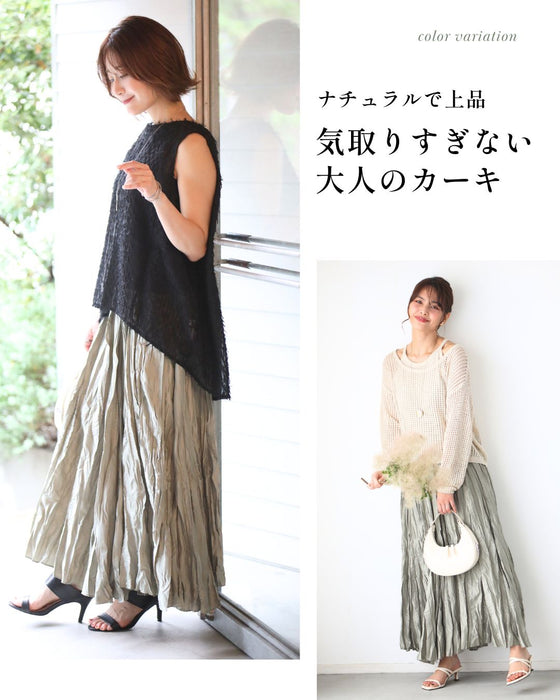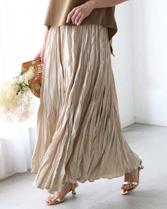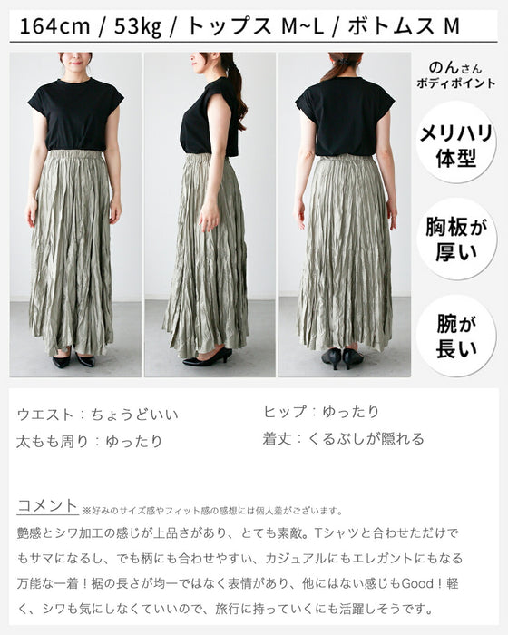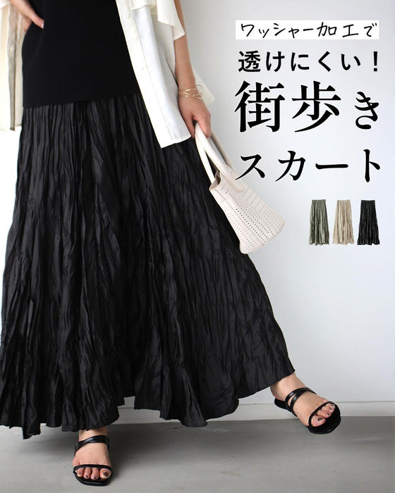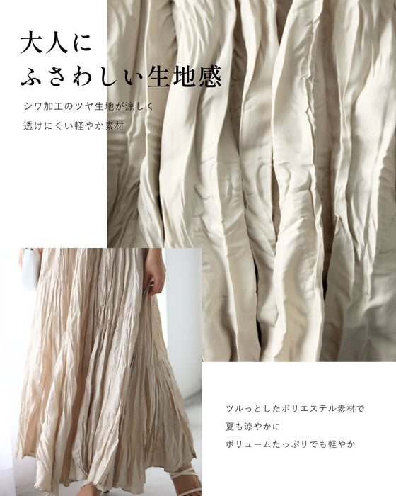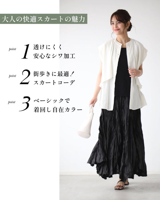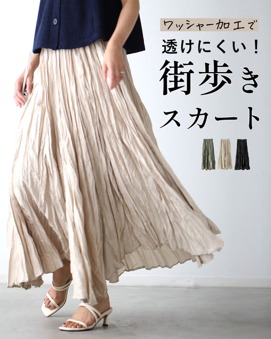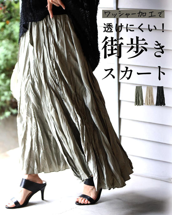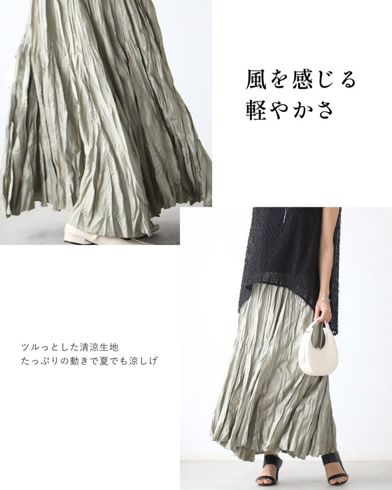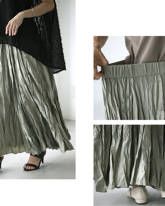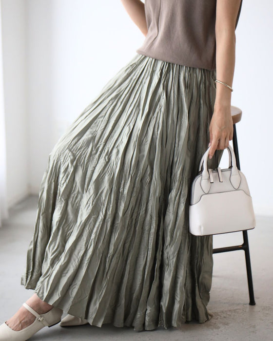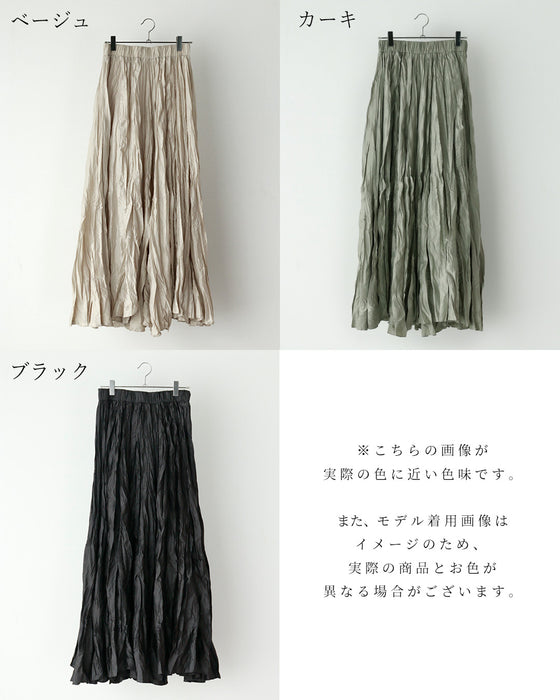 スカート プリーツ ボトムス プリーツスカート ロング シワ加工 ワッシャー きれいめ カジュアル 清涼感 ブラック カーキ ベージュ Black Khaki beige 黒 緑 肌 春 夏 秋 冬 フリーサイズ レディース ファッション Ehre style スタイル エーレスタイル