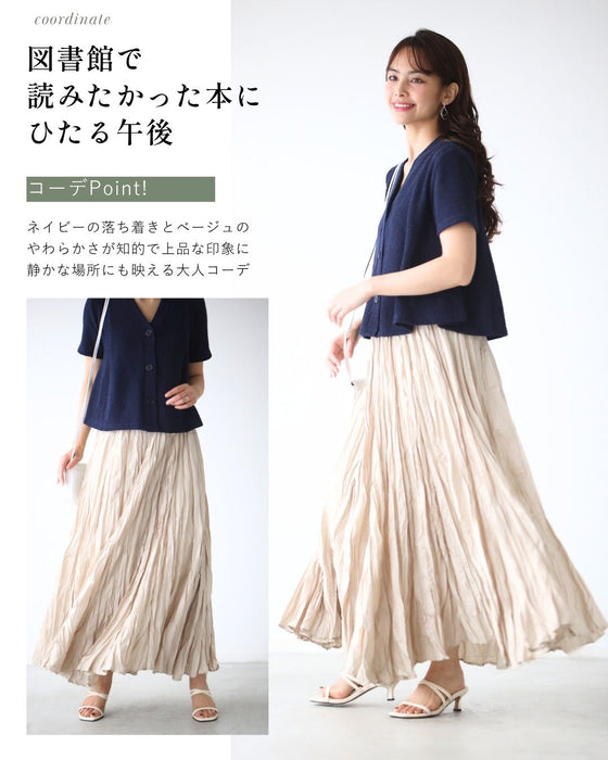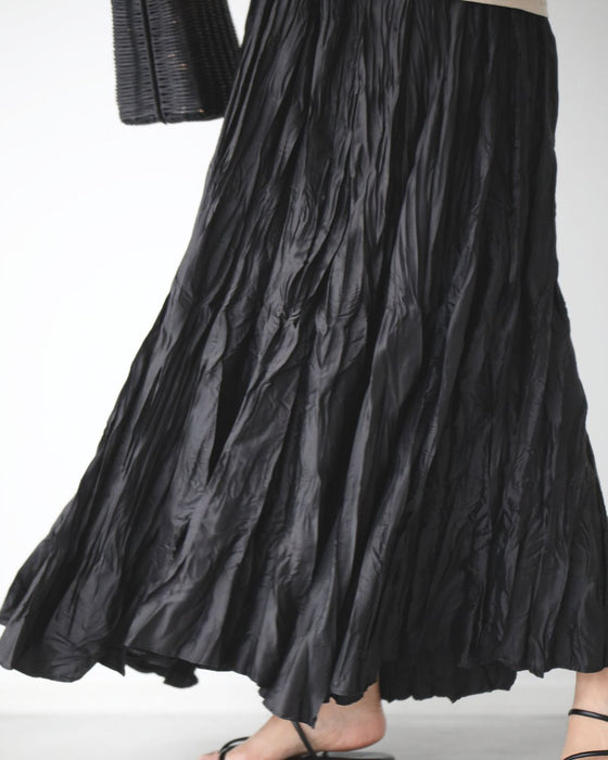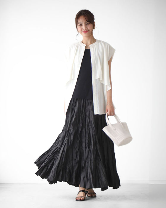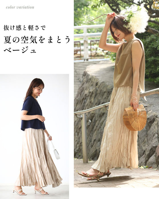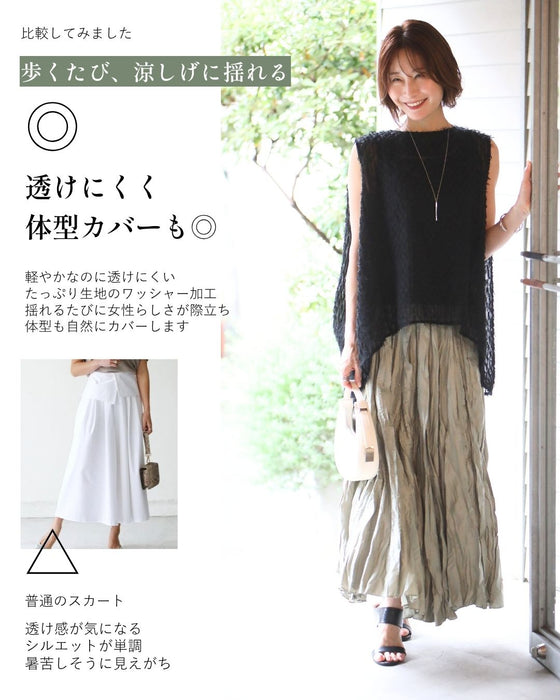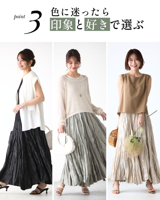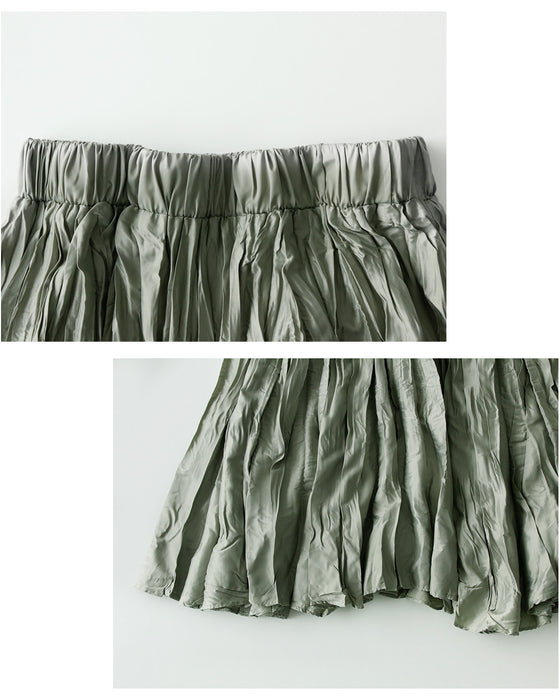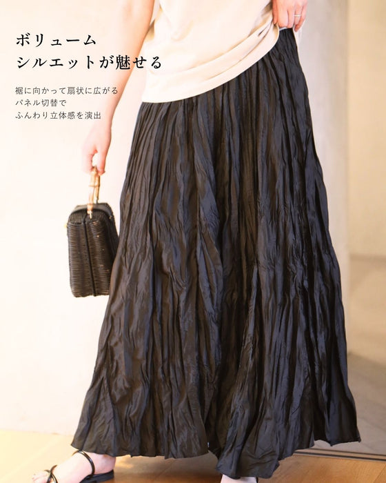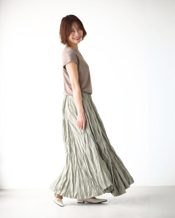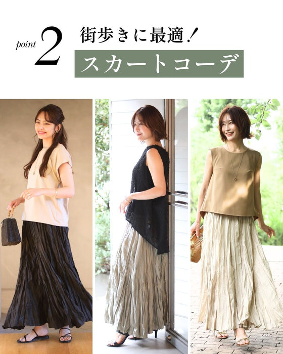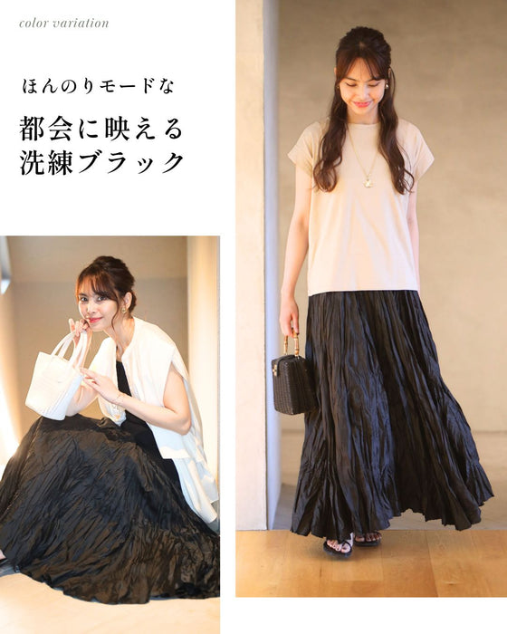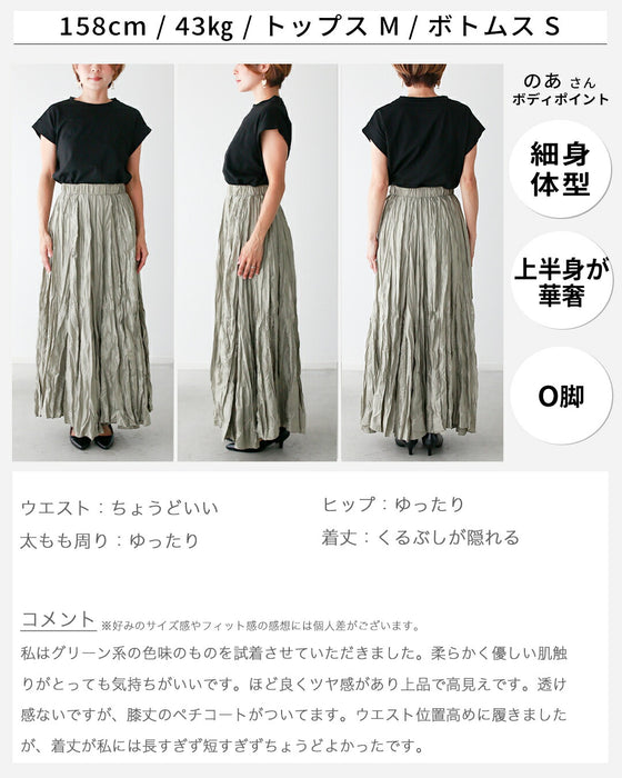 スカート プリーツ ボトムス プリーツスカート ロング シワ加工 ワッシャー きれいめ カジュアル 清涼感 ブラック カーキ ベージュ Black Khaki beige 黒 緑 肌 春 夏 秋 冬 フリーサイズ レディース ファッション Ehre style スタイル エーレスタイル