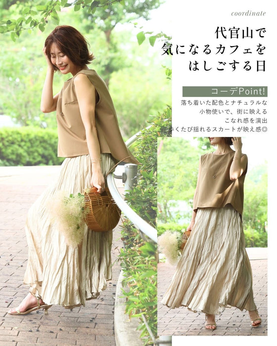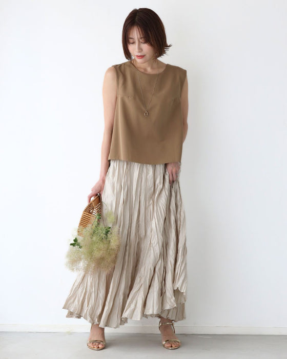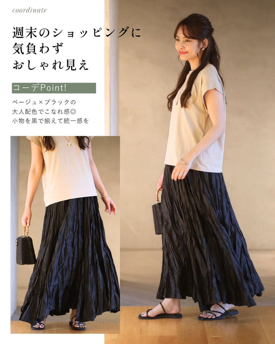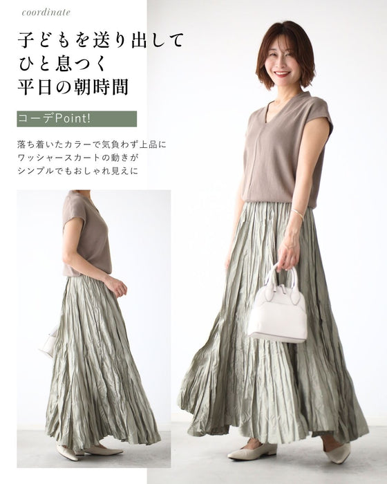 ワッシャースカートの動きが、シンプルでもおしゃれ見えに。