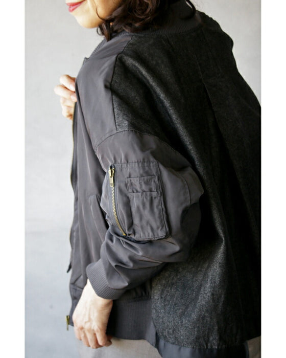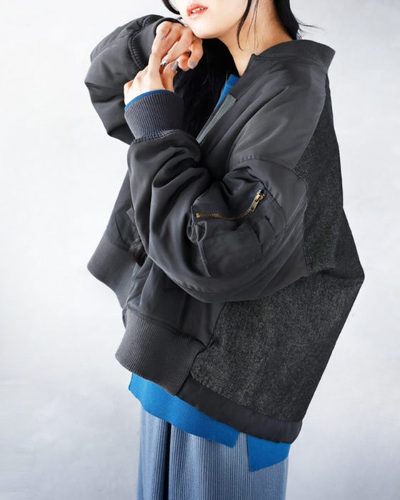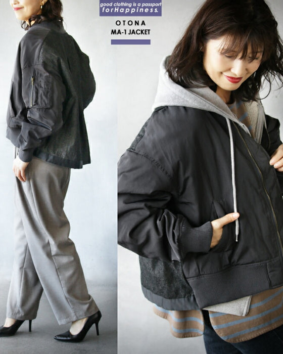 羽織るだけで即トレンド 異素材 MA-1ブルゾン