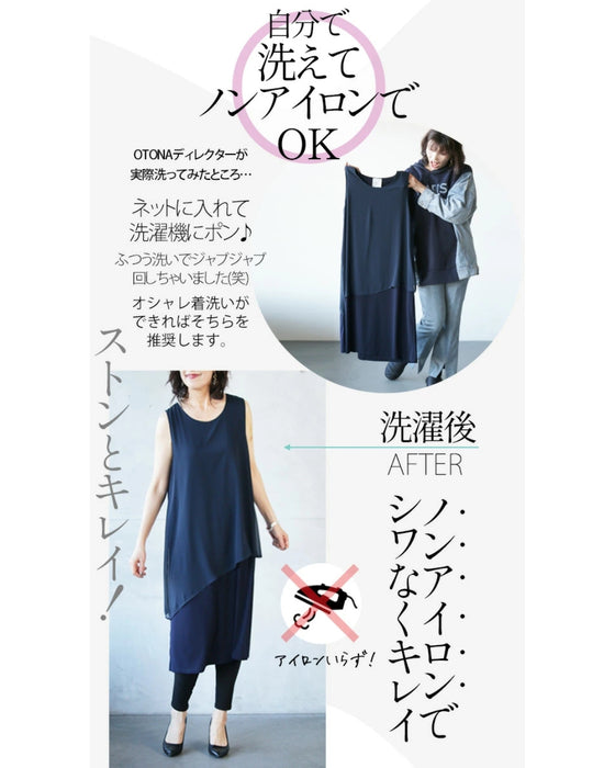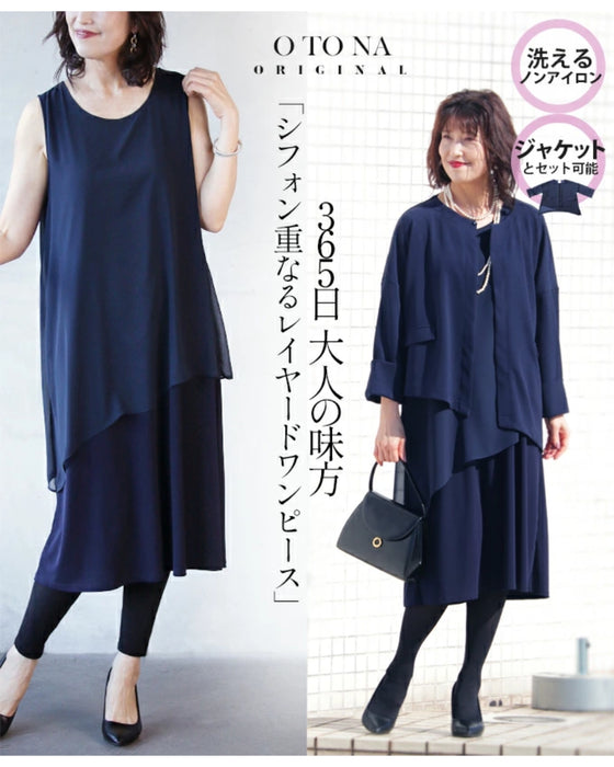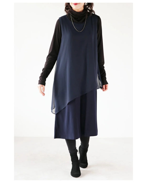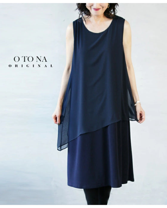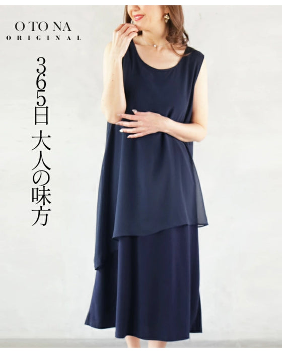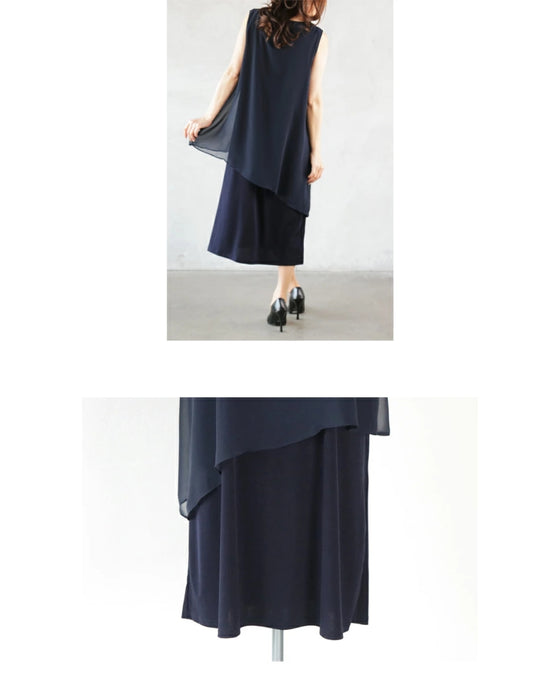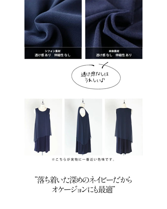 365日大人の味方シフォン重なるレイヤードワンピース『ネイビー』