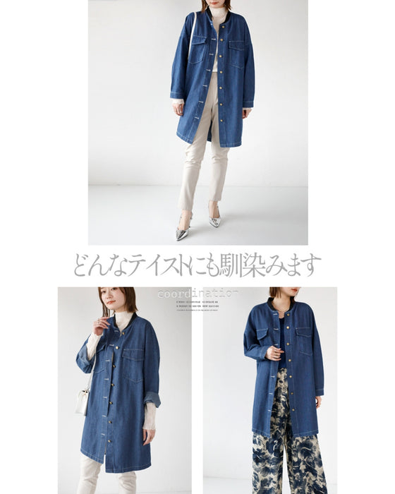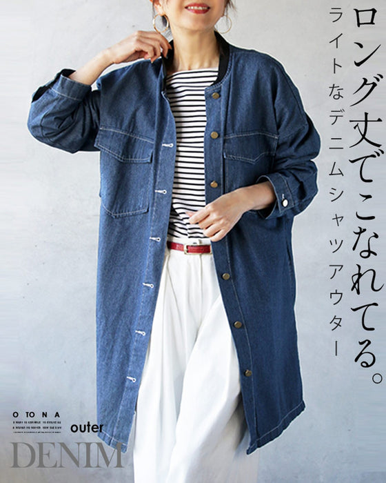 ロング丈でこなれてる。ライトなデニムシャツアウター