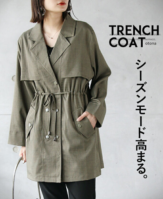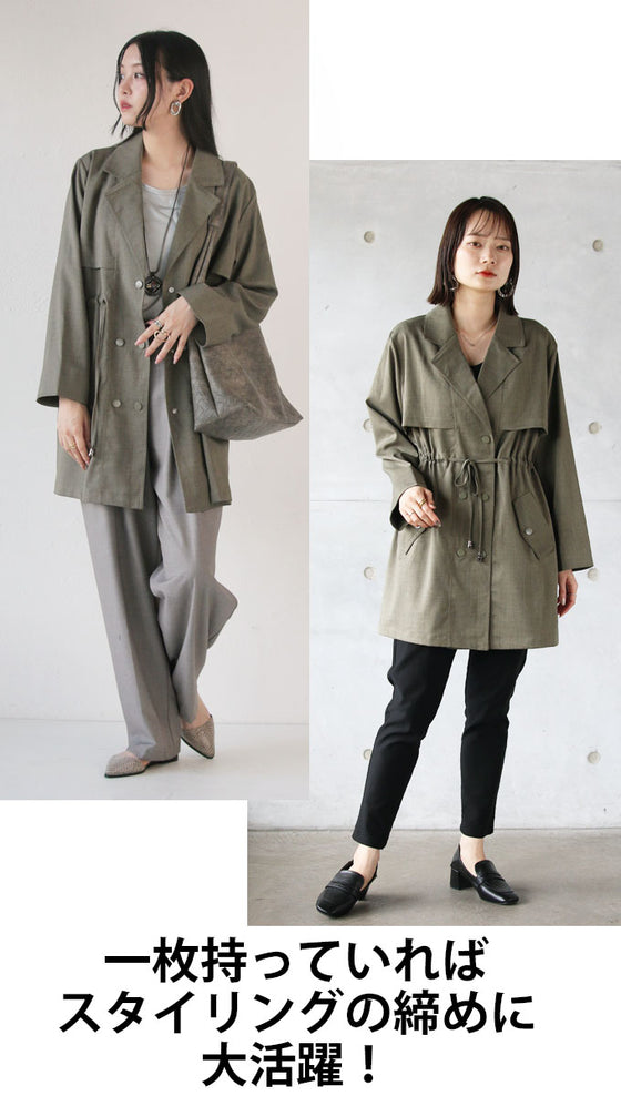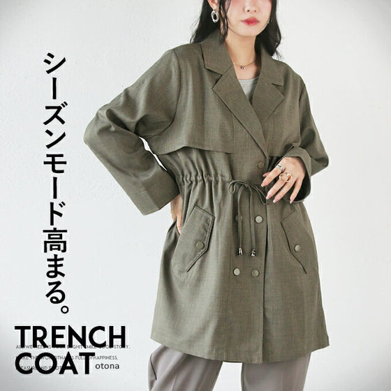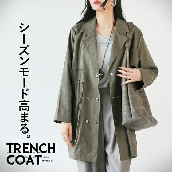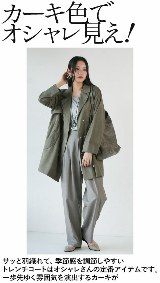 季節の変わり目に大活躍する軽アウター。中でもトレンチコートはオシャレさんの定番アイテムです。コーデの締めに羽織ればトレンド感のあるミリタリーな雰囲気に仕上がります♪