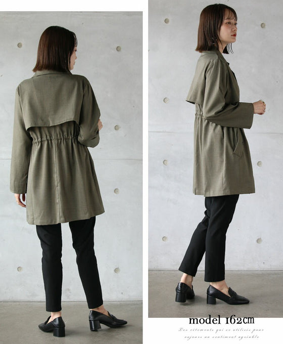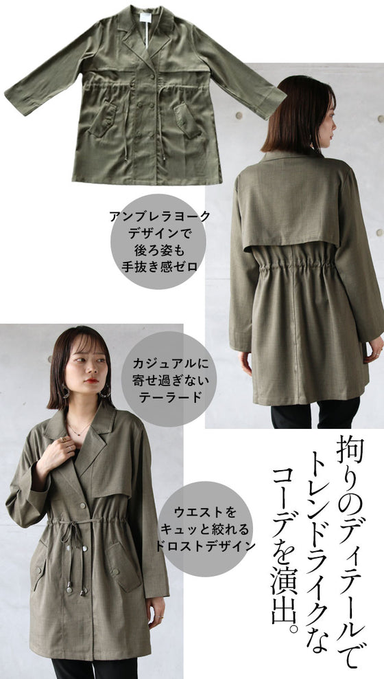 長めの丈感で気になるお尻周りはスッポリカバー。テーラードカラーやアンブレラヨークなど拘りのディテールでトレンドライクなコーデを演出。