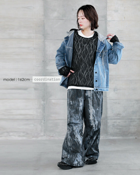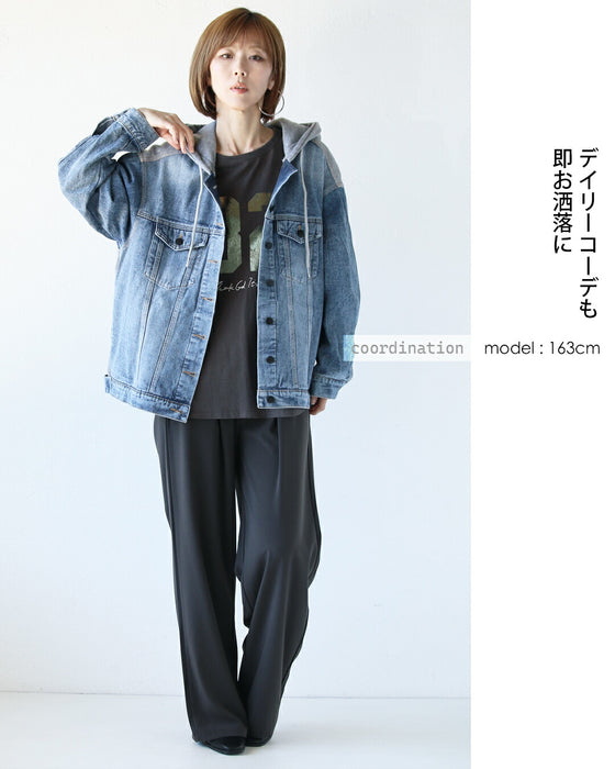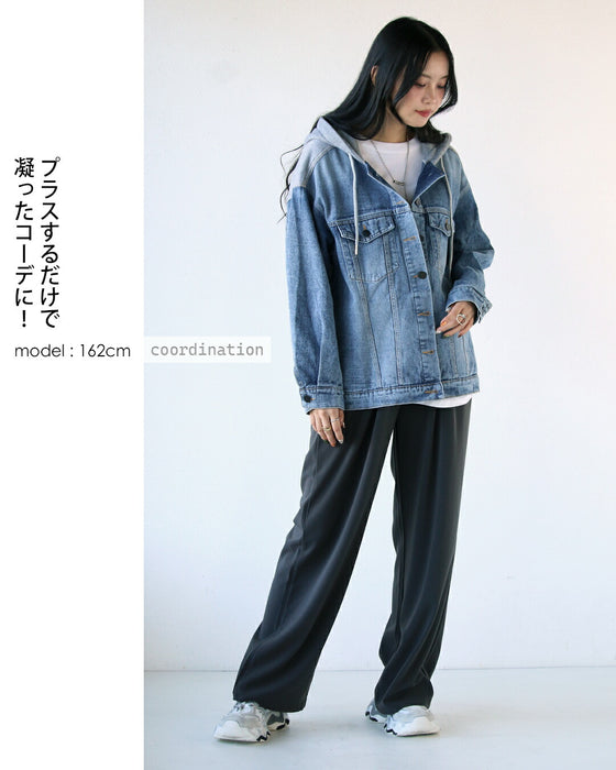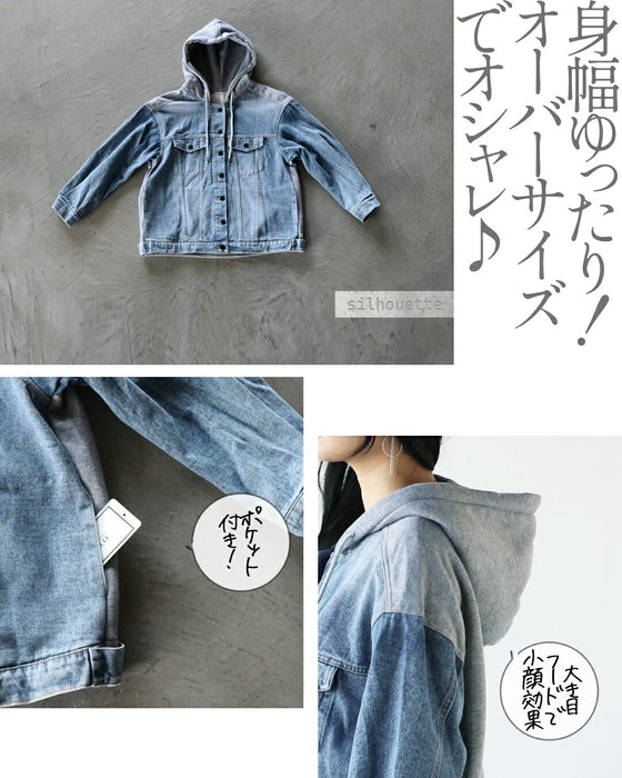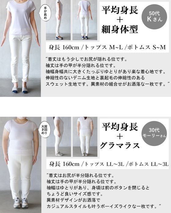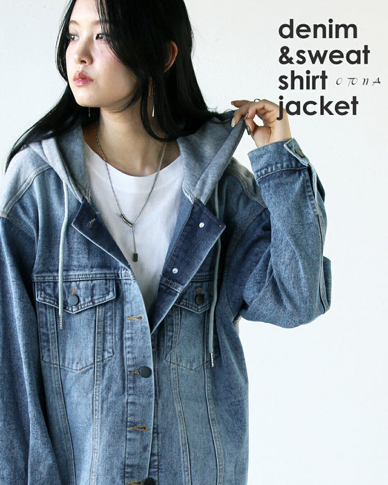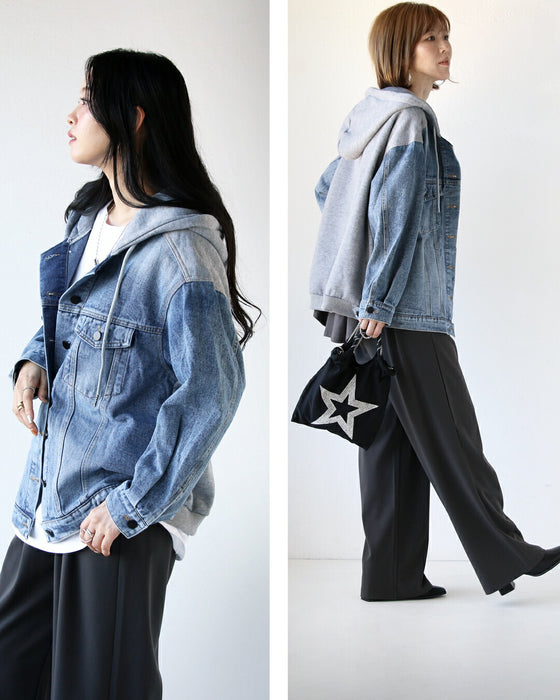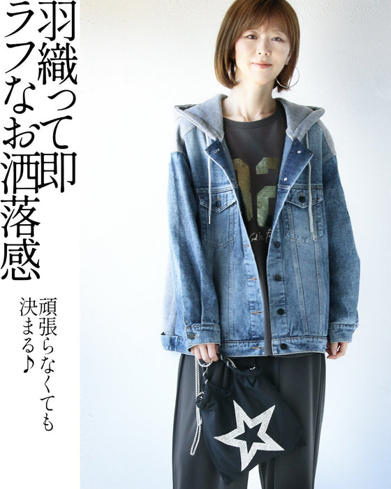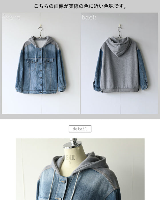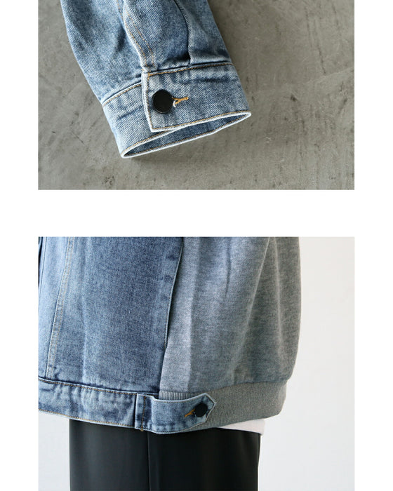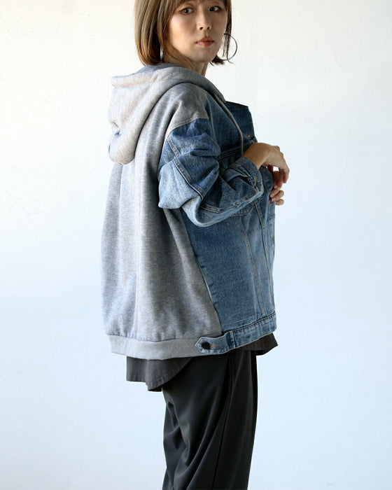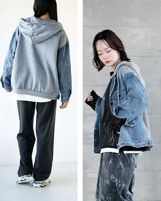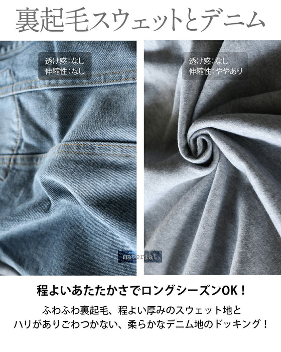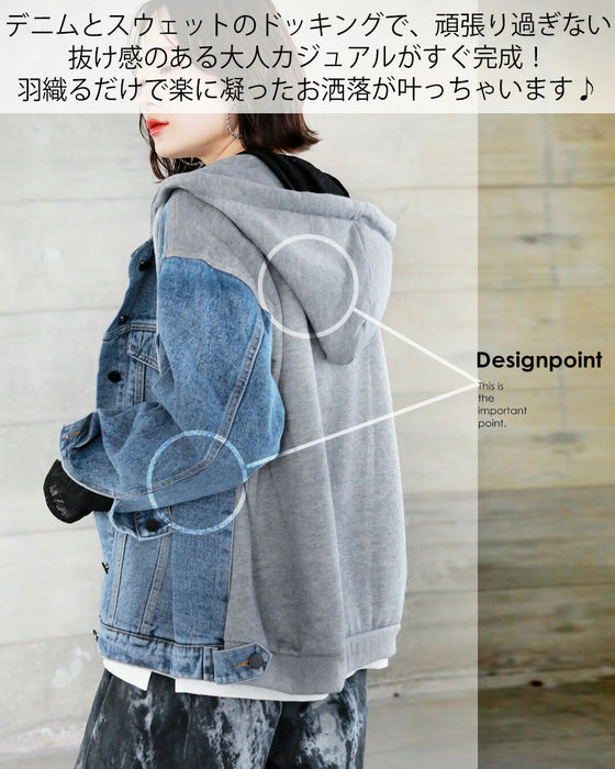 デニムとスウェットのドッキングデザインで、羽織るだけで楽に凝ったお洒落が叶っちゃいます♪