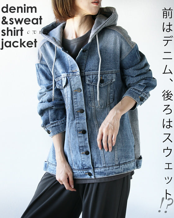 ■前はデニム、後ろはスウェット!?1枚ですぐにカジュアルコーデが完成するジャケットです。