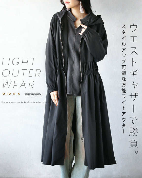 ウエストギャザー で勝負。スタイルアップ 可能な万能ライトアウター