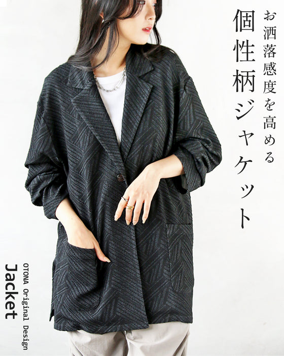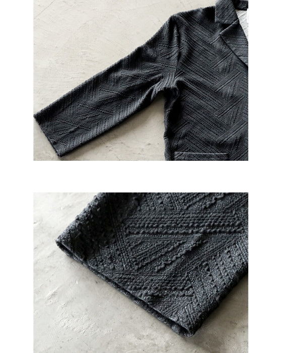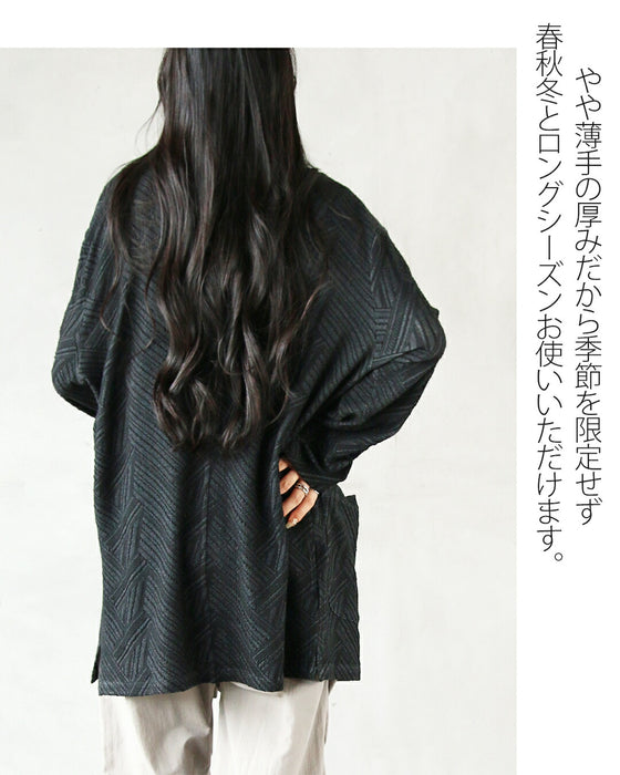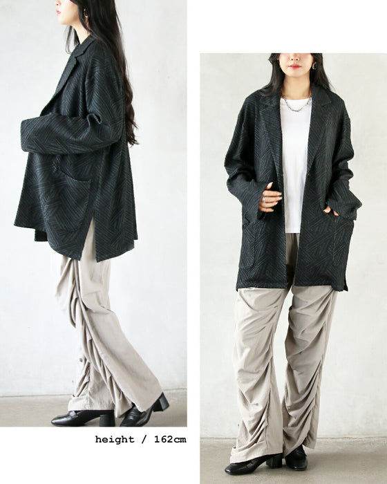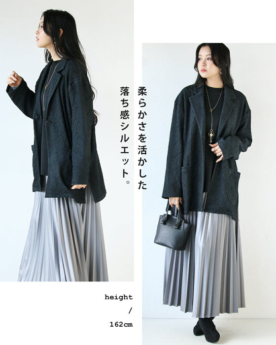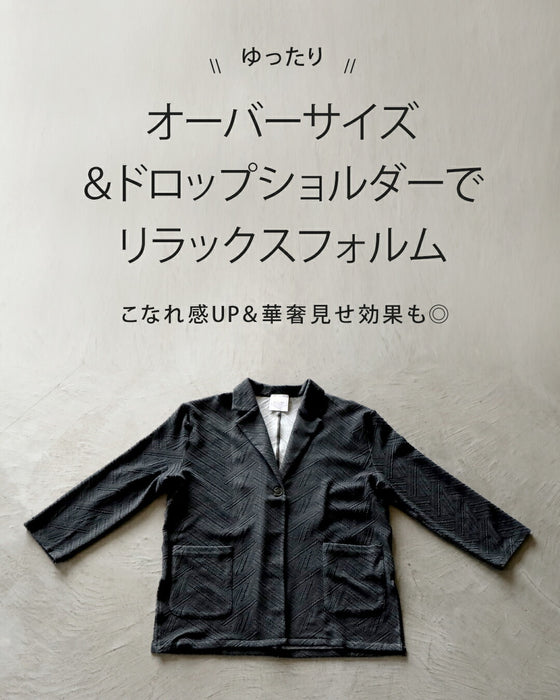 ■シンプルの中に奥行きを演出する幾何学の織模様。 ソフトな上質素材。手触り良く柔らかさを活かした 落ち感シルエットが華奢見せ効果も担って魅力的。