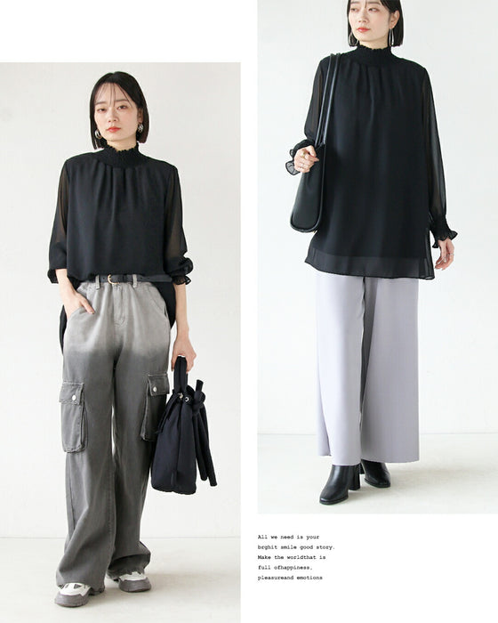 軽やかで動きやすさも兼ね備えた大人のキレイめトップス。