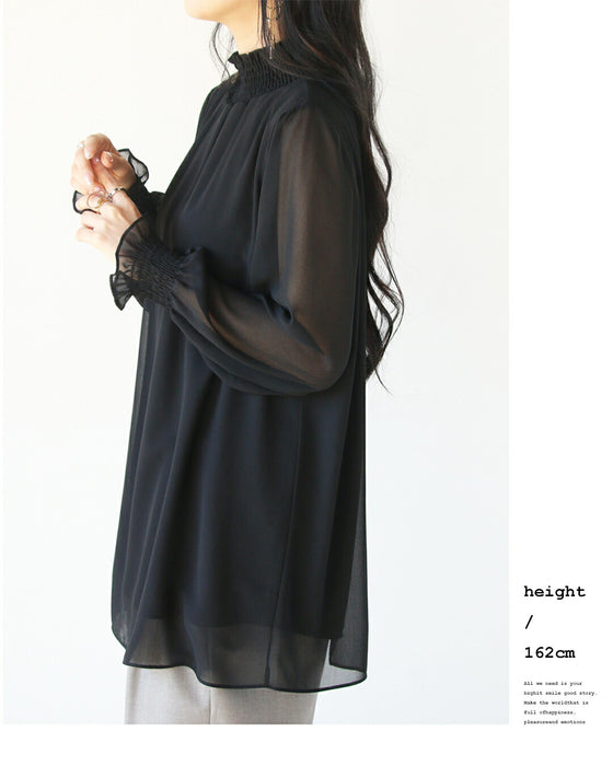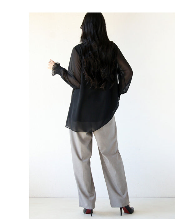■シフォンの軽やかな質感とネックラインの