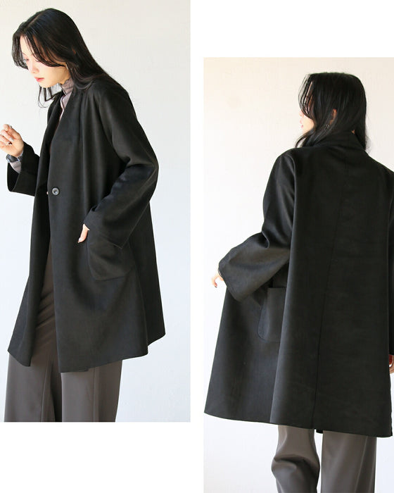 カチッとしてゆる、柔らかフェイクスウェードコート