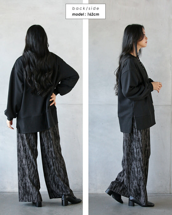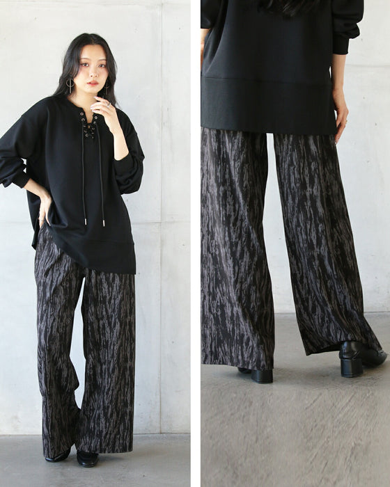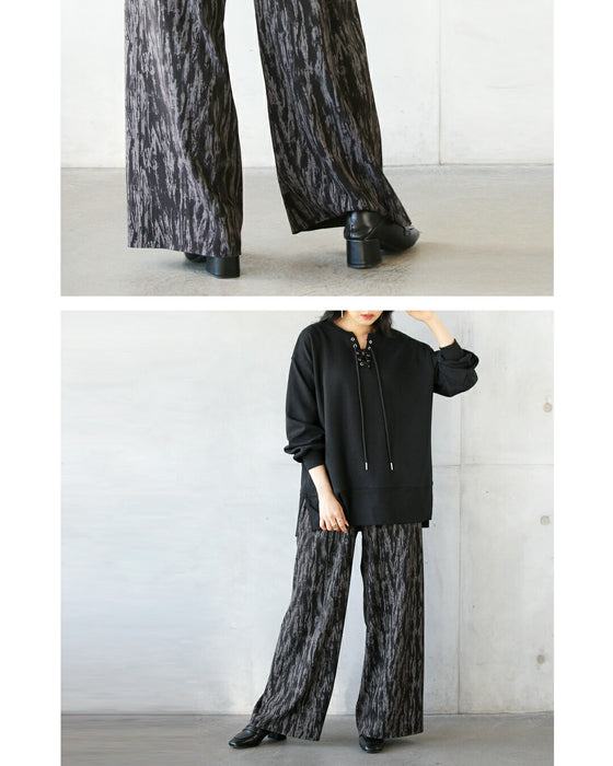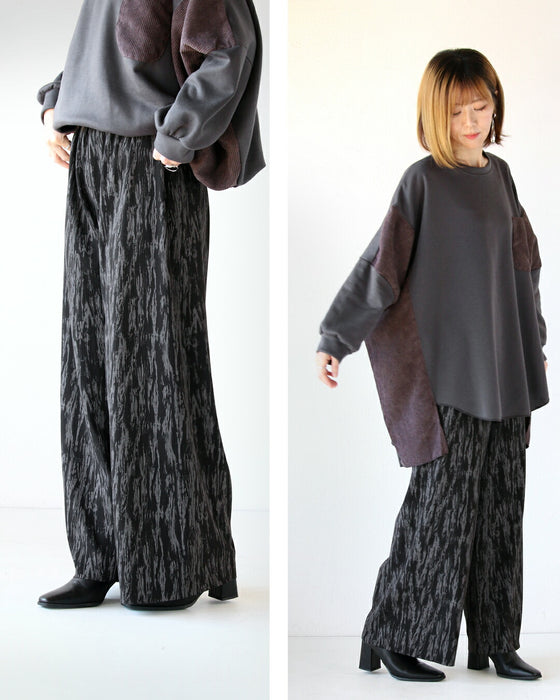 派手過ぎず地味見えしない、染風のクールな柄行きでカジュアルにもモードにも合わせやすい。大人のための万能パンツです!