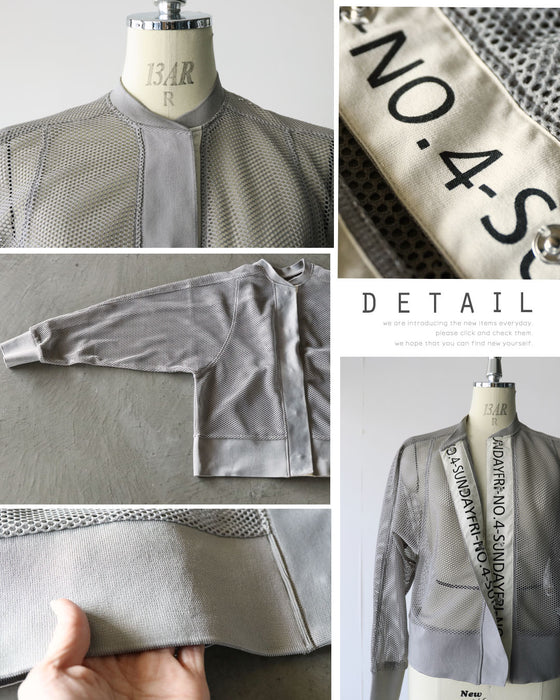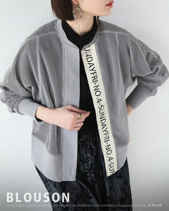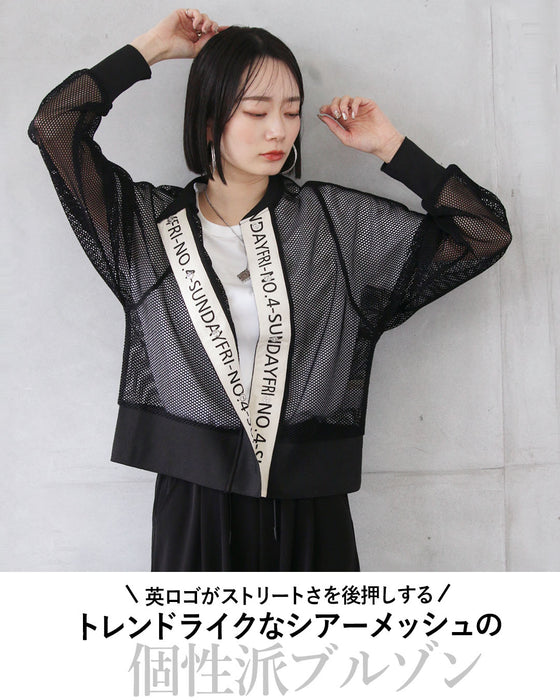 ■トレンドライクなシアーメッシュ素材のブルゾン。カジュアルモードを底上げしてくてるオシャレなロゴデザイン。肌にまとわりつかない、 軽やかなメッシュ。風を通し涼しく、長い季節着られ暑い季節はほんのり肌隠しとしても最適!