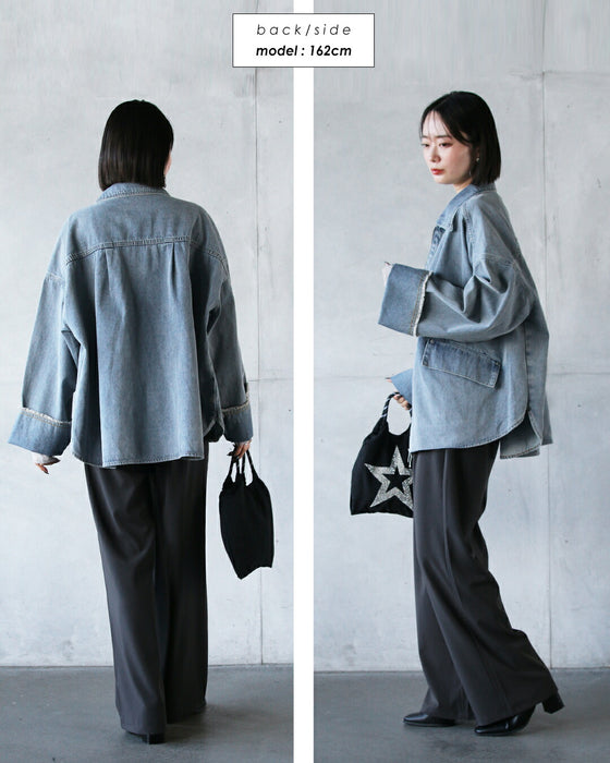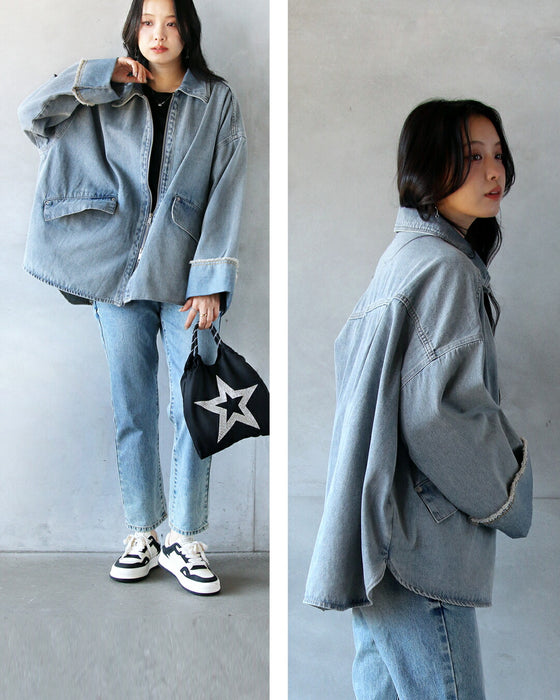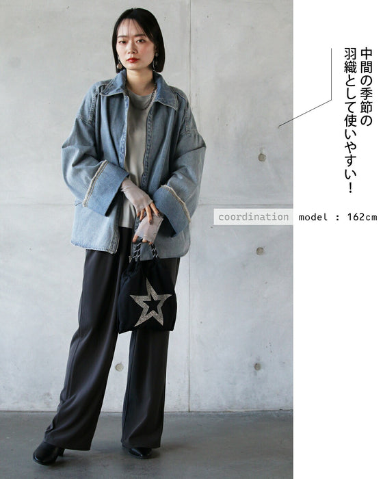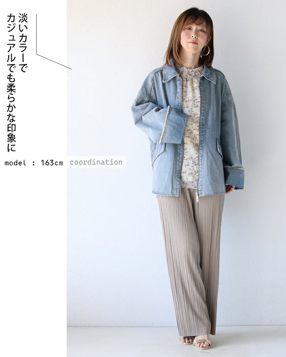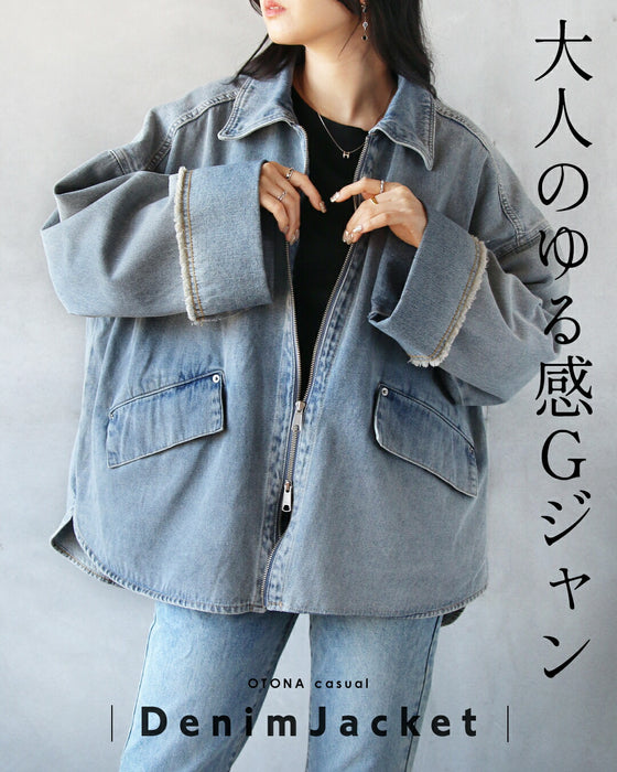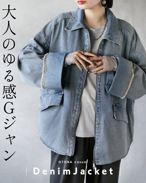 ゆるだぼっとしたシルエットでざくっと羽織りやすくラフ感を演出。トレンドライクなブリーチ感もお洒落♪ ポイントになる斜めポケット、ワイドなフリンジ袖で定番Gジャンでも他と被らず個性を発揮できます。