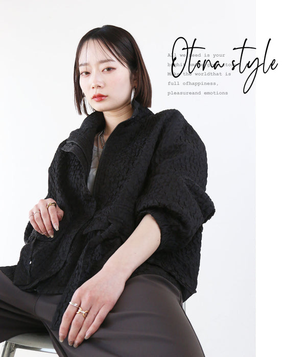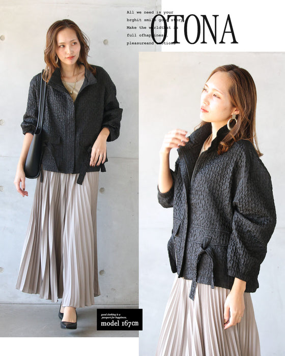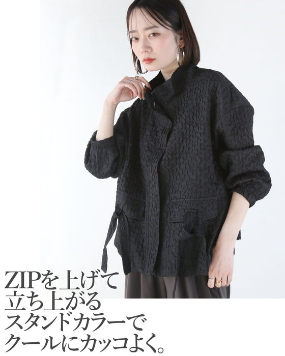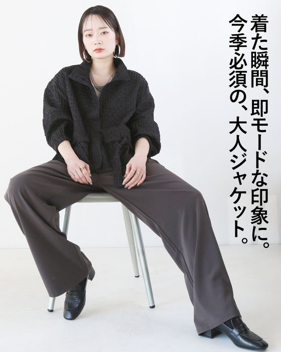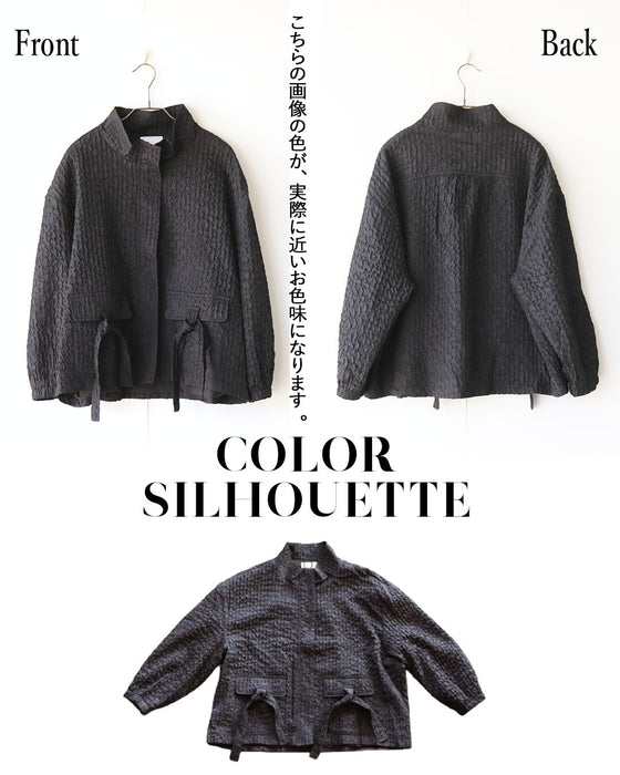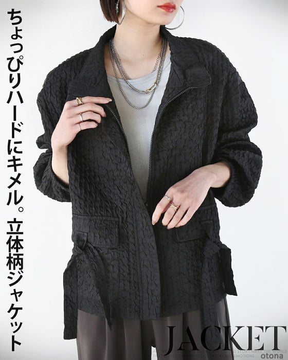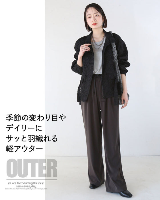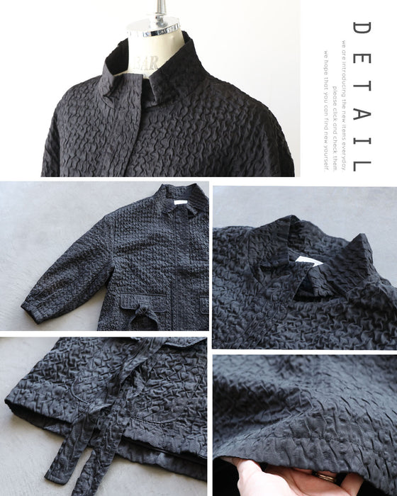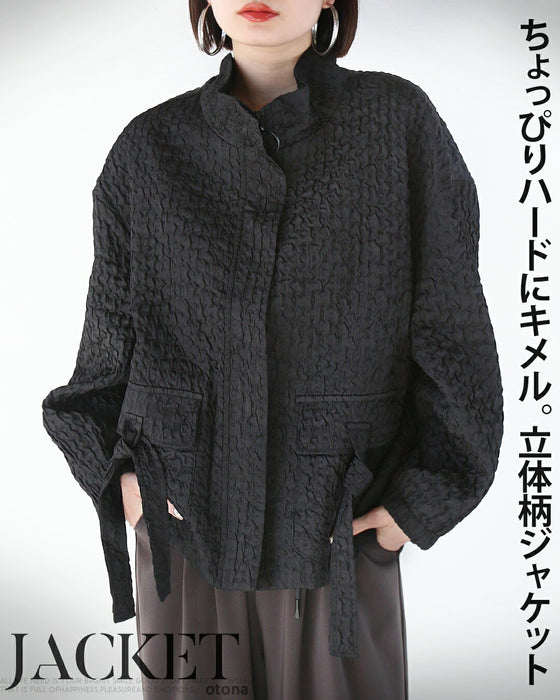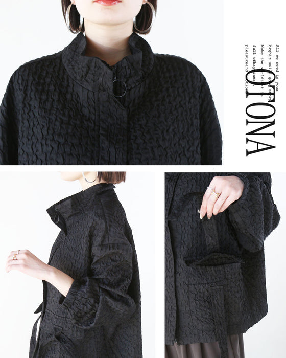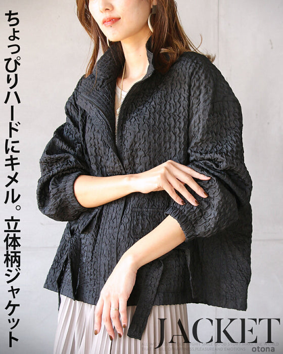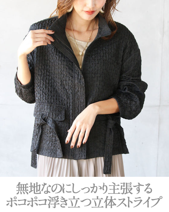 ■季節の変わり目やデイリーにサッと羽織れる軽アウター。無地なのにしっかり主張するポコポコ浮き立つ立体ストライプ柄がオシャレ。