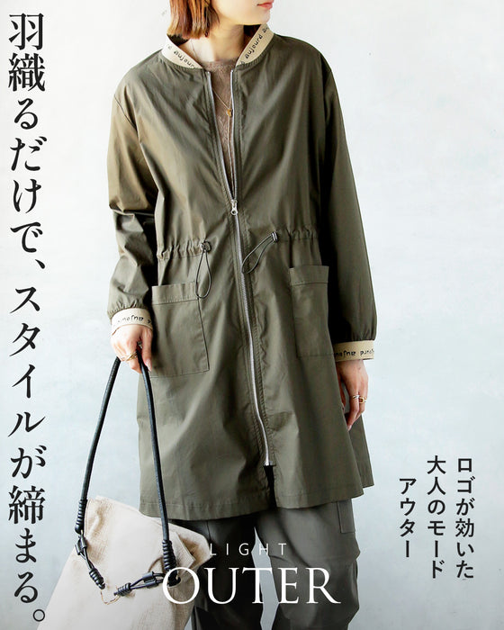 襟と袖口に配したロゴ入りの配色ラインがアクセントになった、 洗練デザインのジップアップアウター。