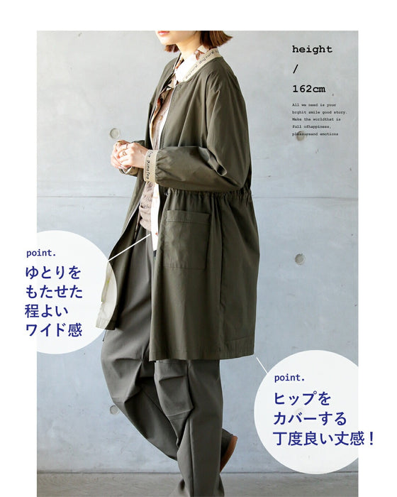 ほどよいゆったり身幅で、ニットやブラウスの上からも羽織りやすいワイド感。 ミドル丈で腰やヒップ周りを隠しながら縦長を意識させスッキリ見せも叶える優秀さ。 軽量で動きやすく、長時間着てもストレスフリー。
