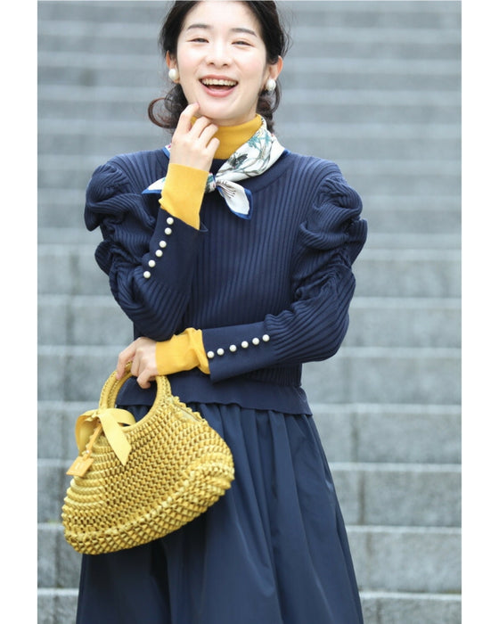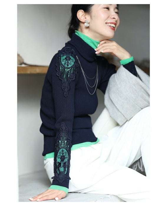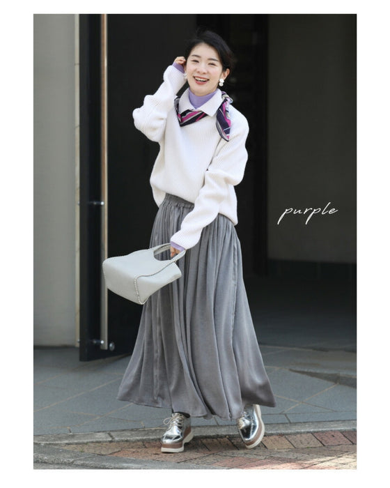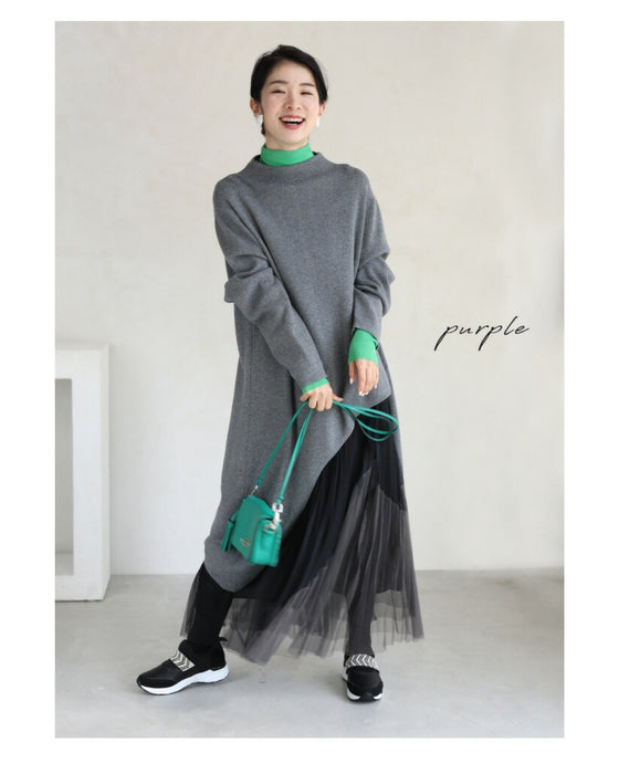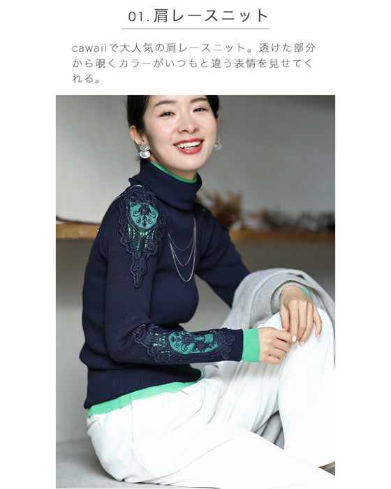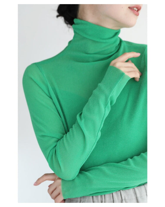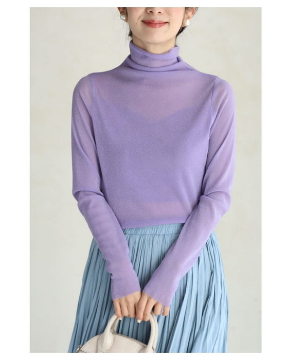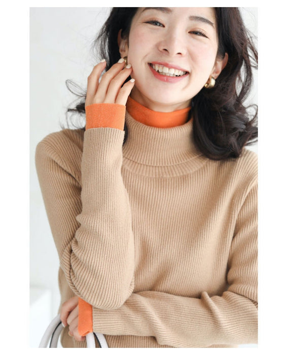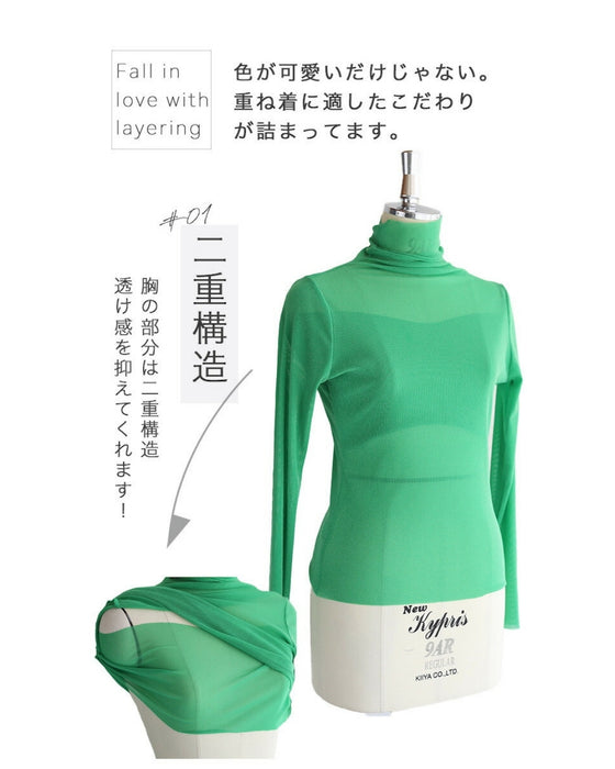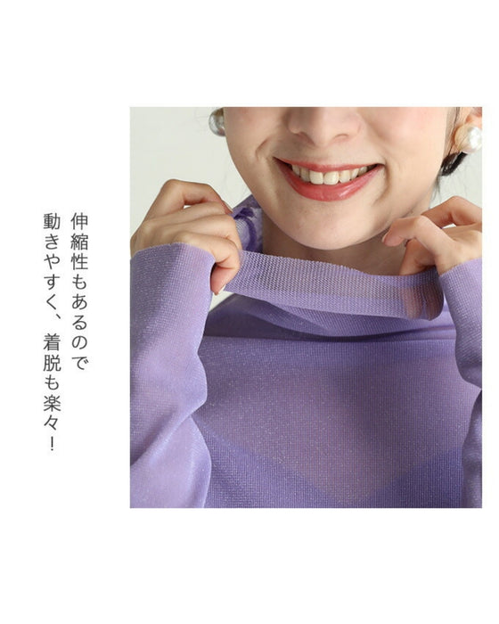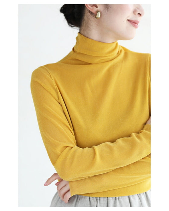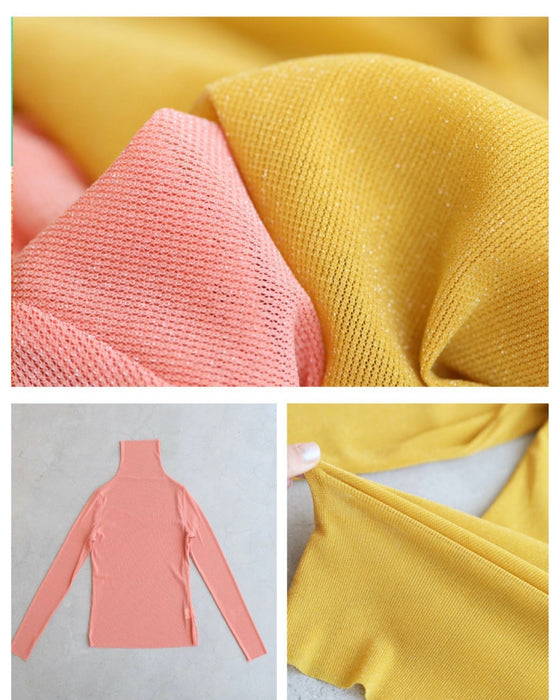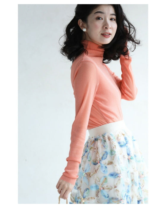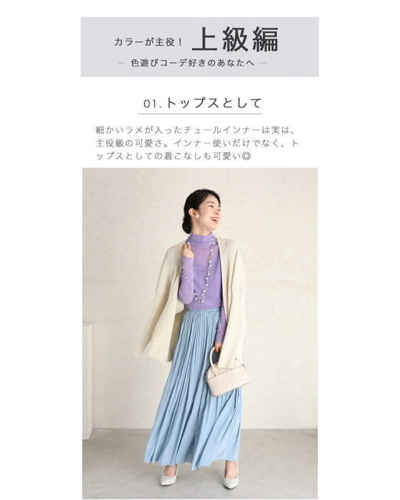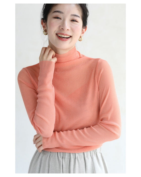 胸の部分が二重構造になっていて透け感を抑えてくれる♫タートルネックも少し長め設計◎細やかなラメがさりげなく首元や顔周りが明るく見える♡
