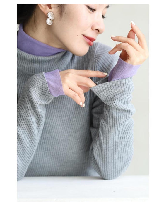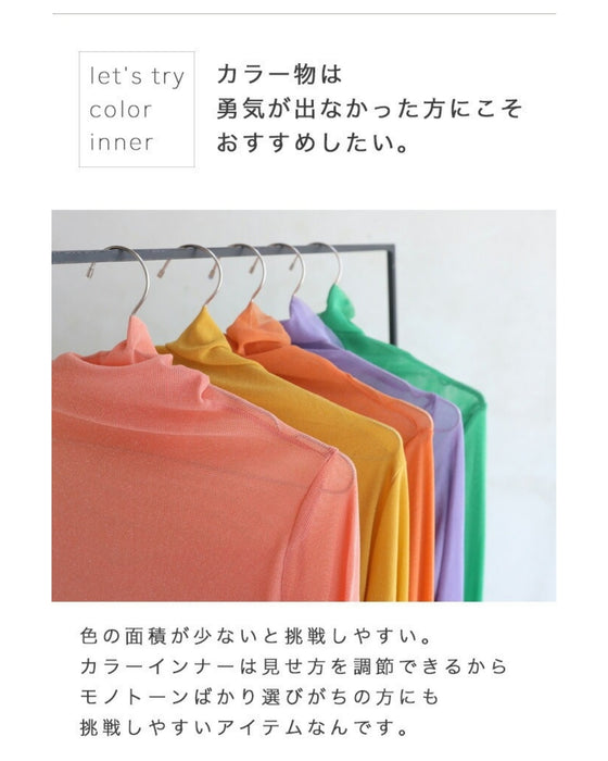 薄手だからインナーとして着ていてもゴワゴワしにくいから、色々なトップスにも合わせやすい。伸びが良いから着脱楽々でストレスフリー♪
