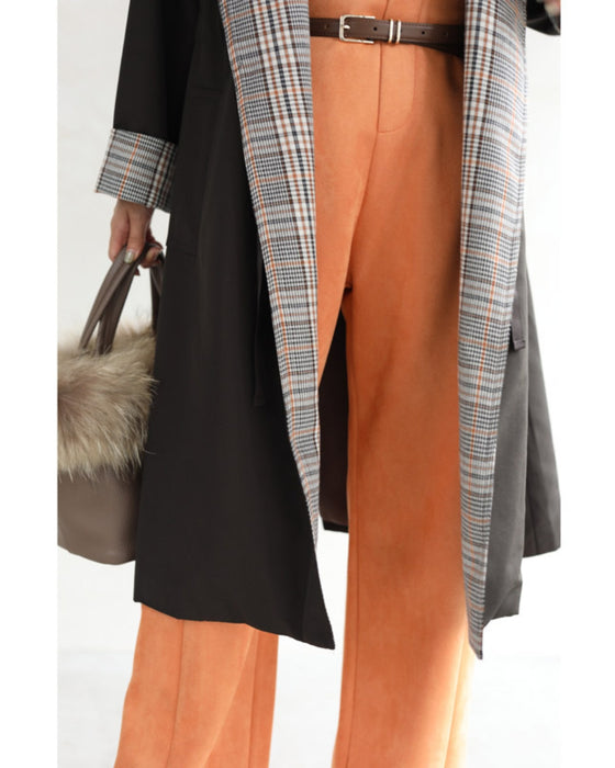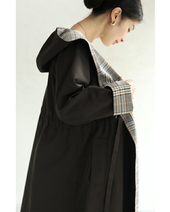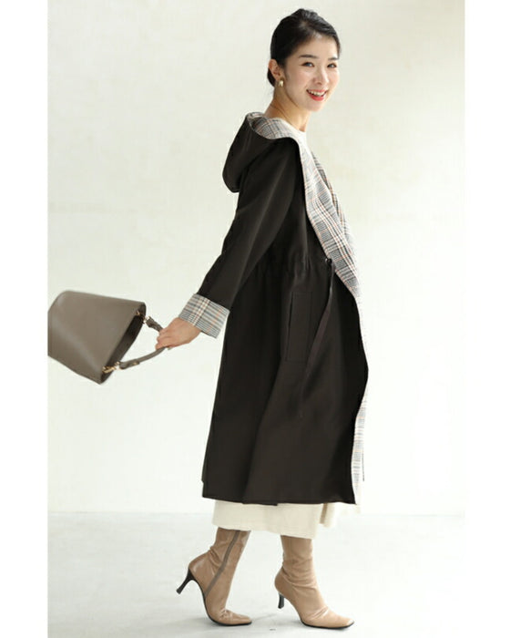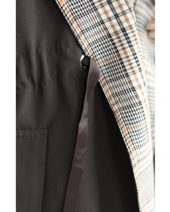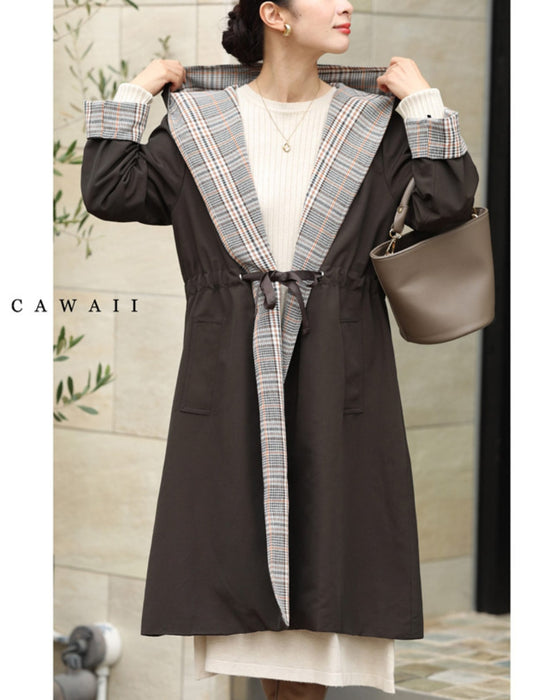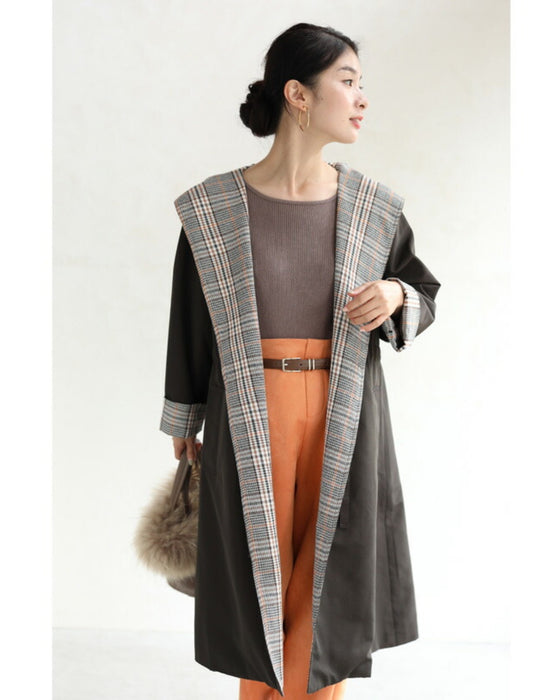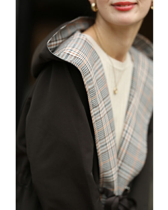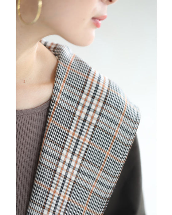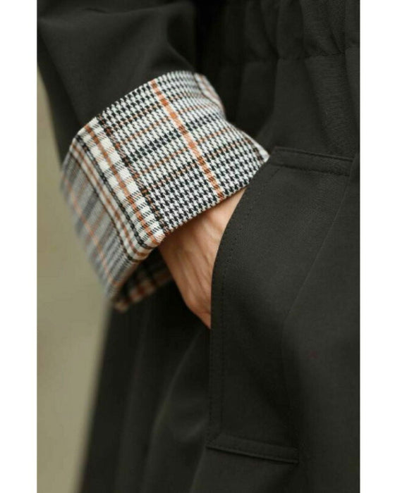 さらりと羽織るだけで自然とチェックの裏地がIラインを作ってくれるから全体をすっきりとしたお洒落な印象にしてくれます◎袖もロールすることで手元にもチェックのアクセントを添えてくれます。