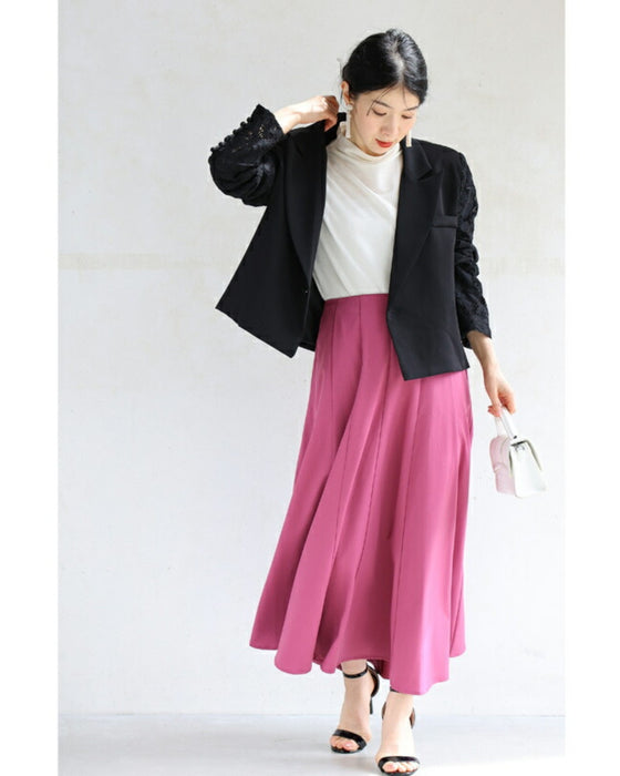 異素材の組み合わせがお洒落感が増します。短め丈でスッキリとスタイルをよく見せてくれます。