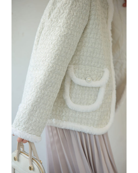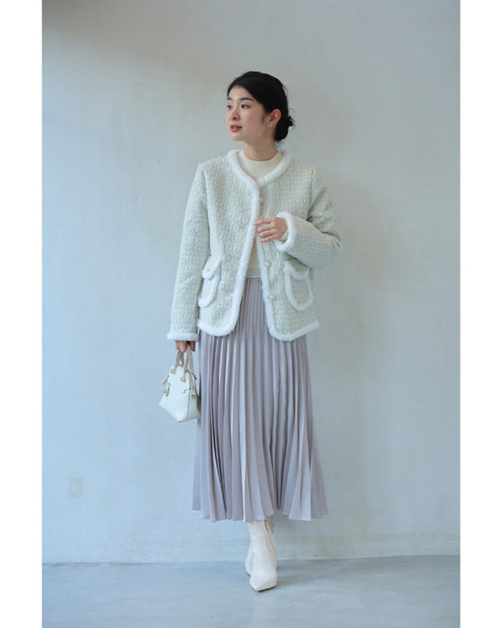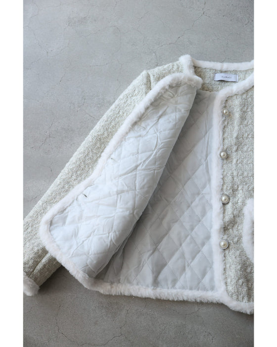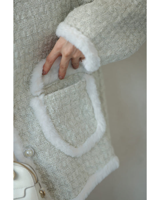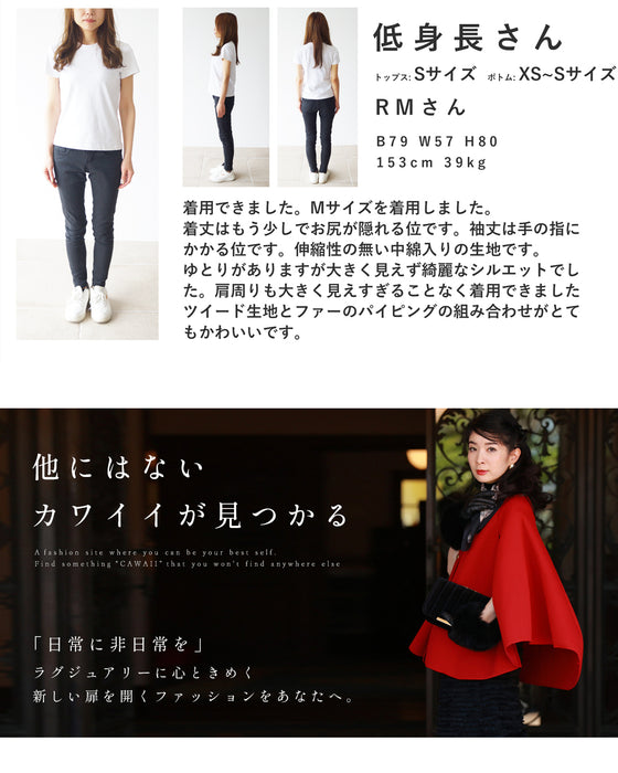 ファーアクセントがポイントとなり、エレガントでリッチな雰囲気を演出しています。季節感を演出しながらおしゃれ度を上げてくれるアイテムです。