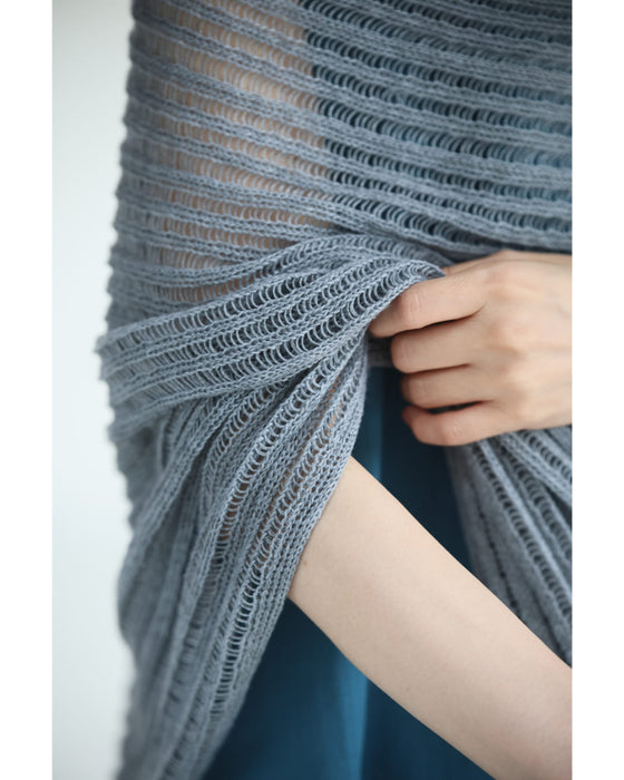 透け感のある軽やかな編地は、肌離れがよく、夏にぴったりな軽やかさ。通気性も良く、見た目にも爽やか。