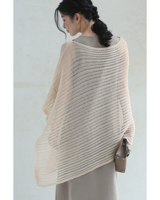涼しく肌をカバーする。ふんわり柔らかサマーニットポンチョ