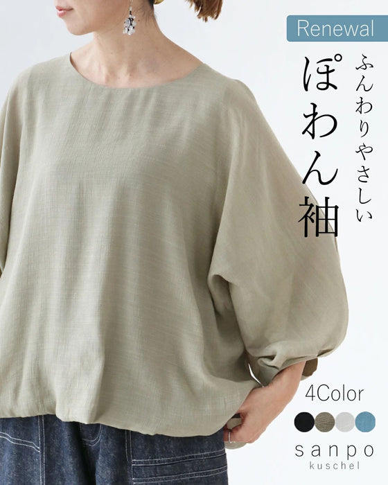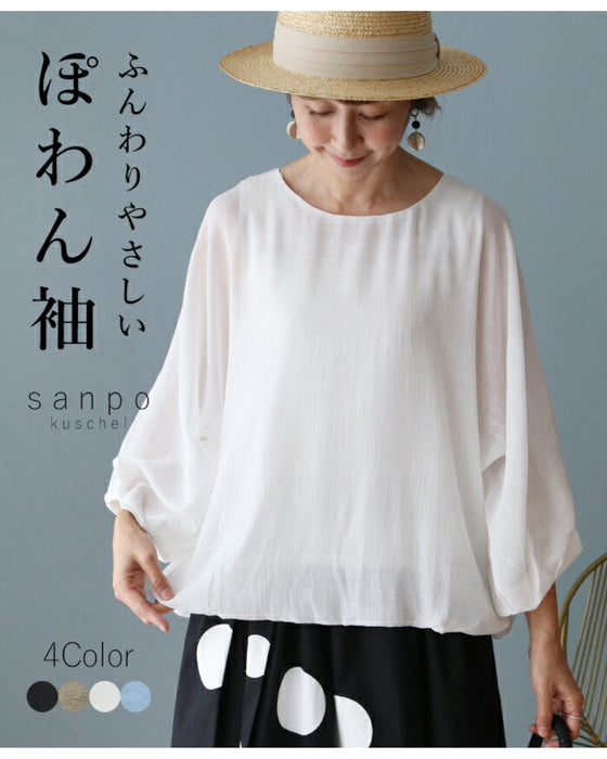 ブラウス 体型カバー【ふんわりやさしいぽわん袖トップス】 ぽわん袖 二の腕隠し 体型カバー 着痩せ シアー 軽い カラバリ オフィスカジュアル トップス 涼しいブラウス レディース 女子会 同窓会 白 水色 黒 グリーングレー 30代 40代 50代 60代 sanpo【b02291ko】