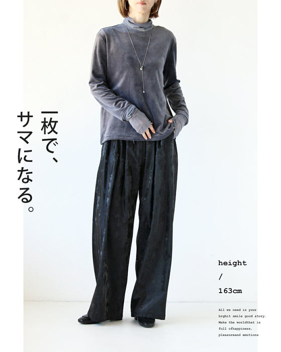 高見えを演出。裏側はさらりとした優しい肌触り。 伸縮性にも優れ、着易さ◎