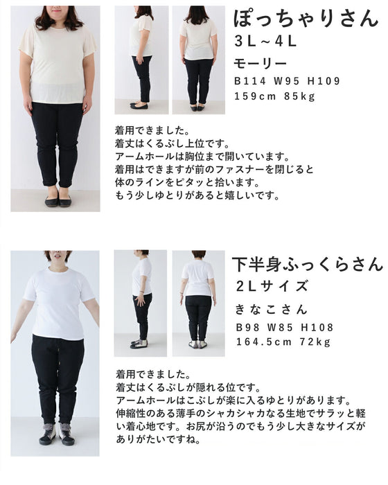締めつけ感のないワイドなシルエットが、気になるウエストやヒップまわりを自然にカバー。体型問わず着やすく、リラックス感もおしゃれも両立します。