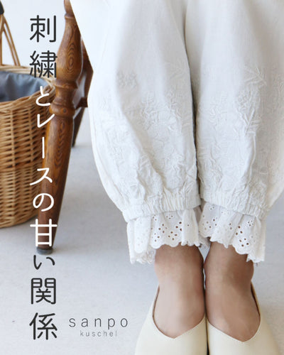 〈SからLL対応〉刺繍とレースの甘い関係パンツ