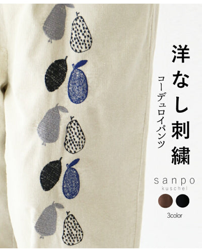 (全3色)洋なし刺繍コーデュロイパンツ