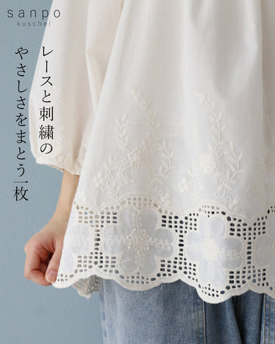 レースと刺繍のやさしさをまとう一枚トップス