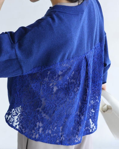 繊細なレース模様が美しく上品見えしてレースの抜け感が軽やかさがあります。ラメが織り込まれていてカーディガンに光と輝きを華やかさをプラスしてくれます。