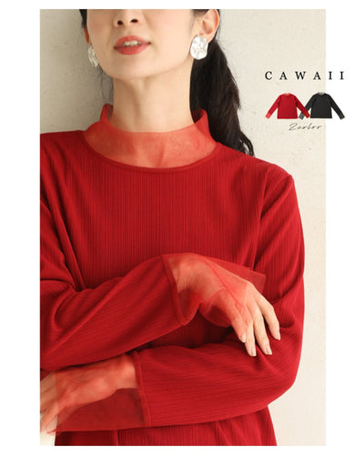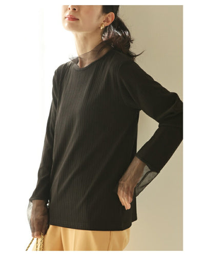 ふわりとカバーする2重チュールのリブカットソートップス