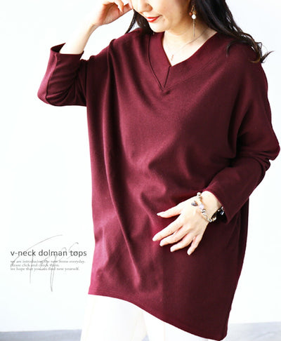 ダブルのVで綺麗魅せを創り出すVネックドルマントップス『ワインレッド』